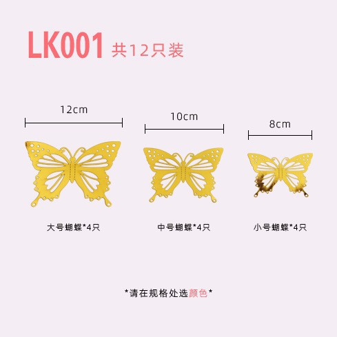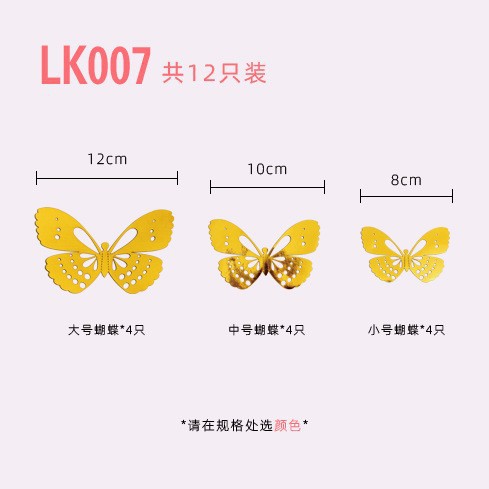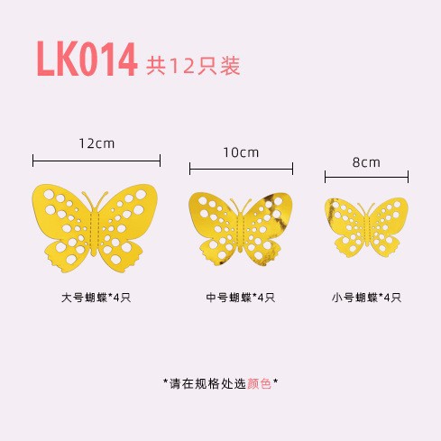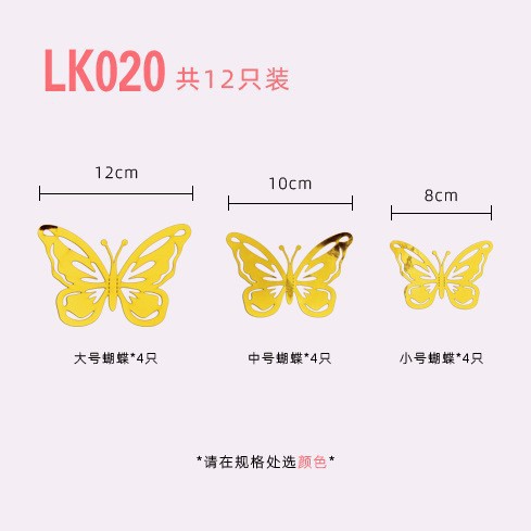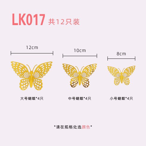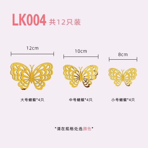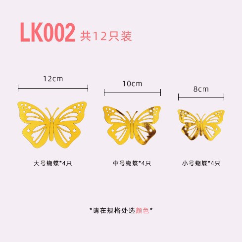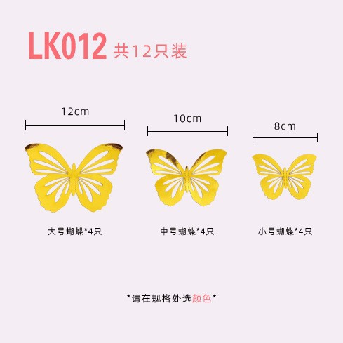 12只装3D金属质感镂空蝴蝶跨境外贸墙贴立体仿真蝴蝶家居贴纸装饰