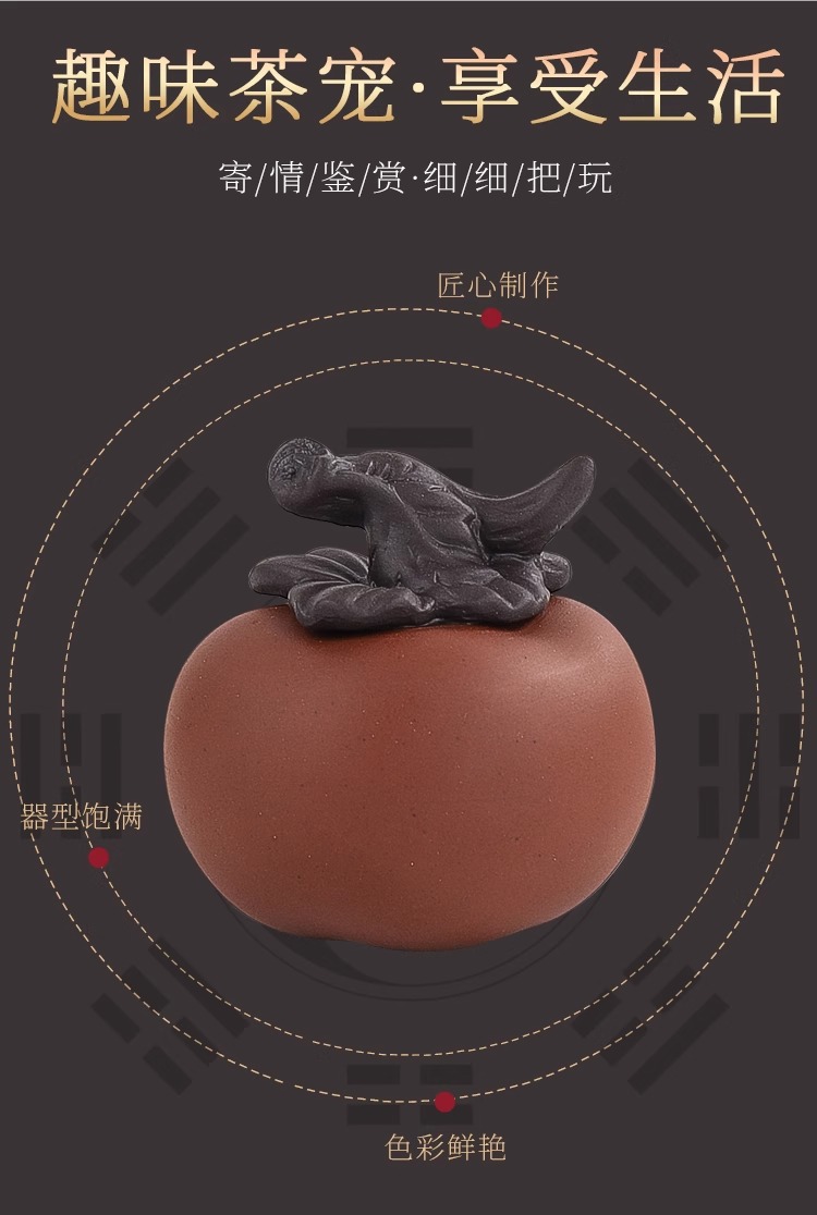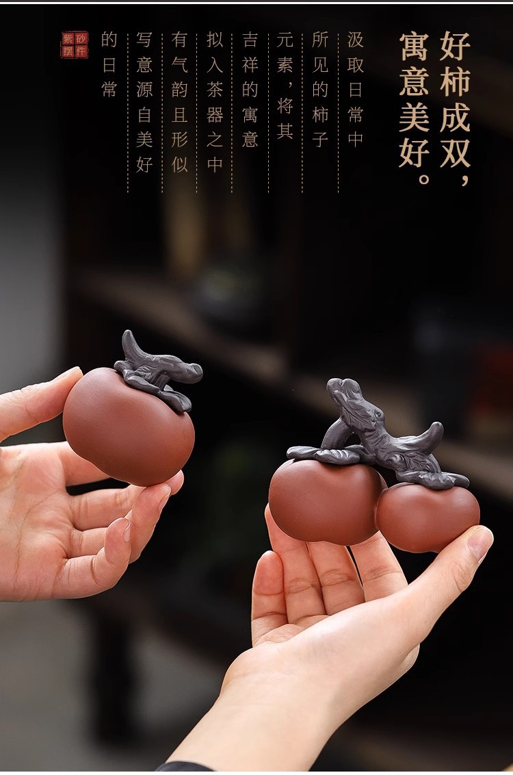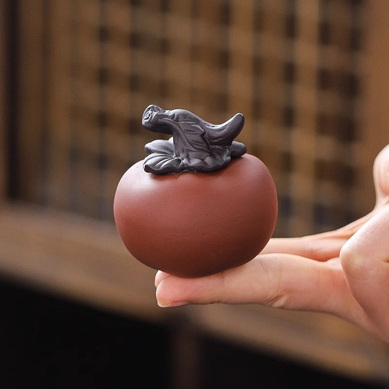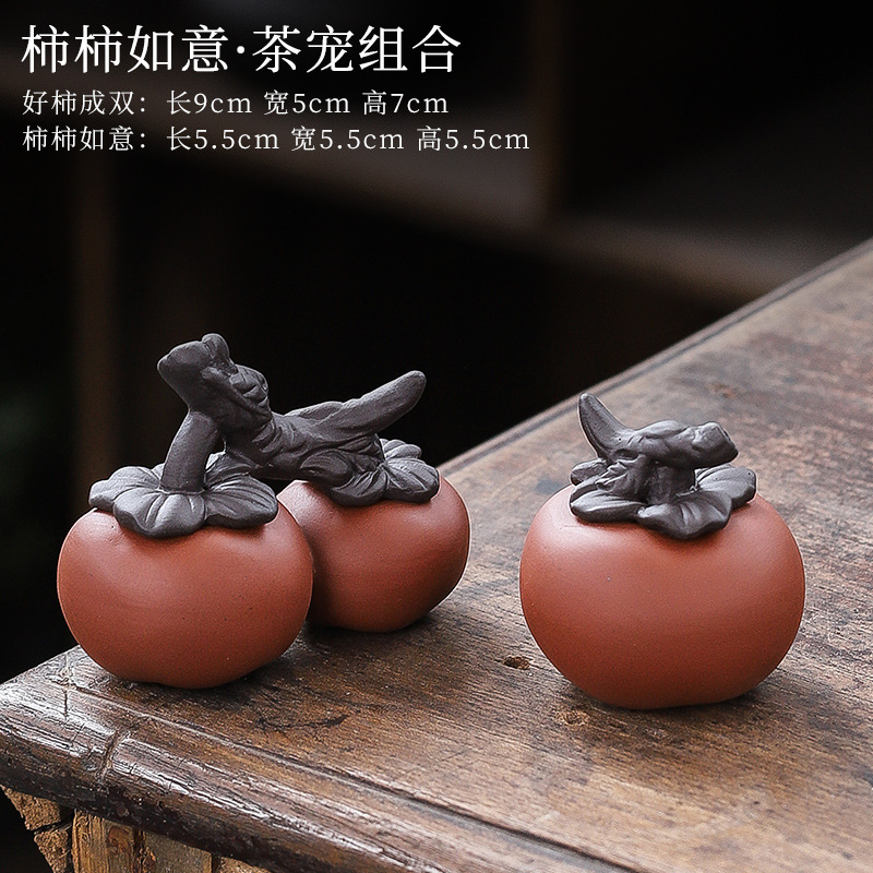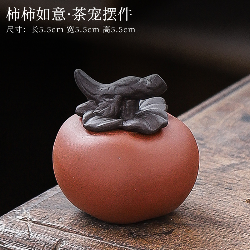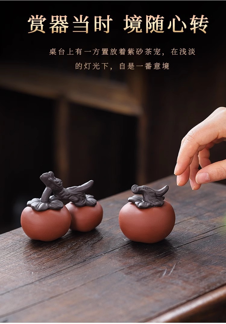 原矿紫砂柿子茶宠摆件盖置精品可养防真水果茶具小茶玩装饰工艺品