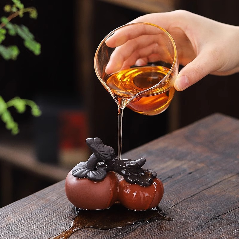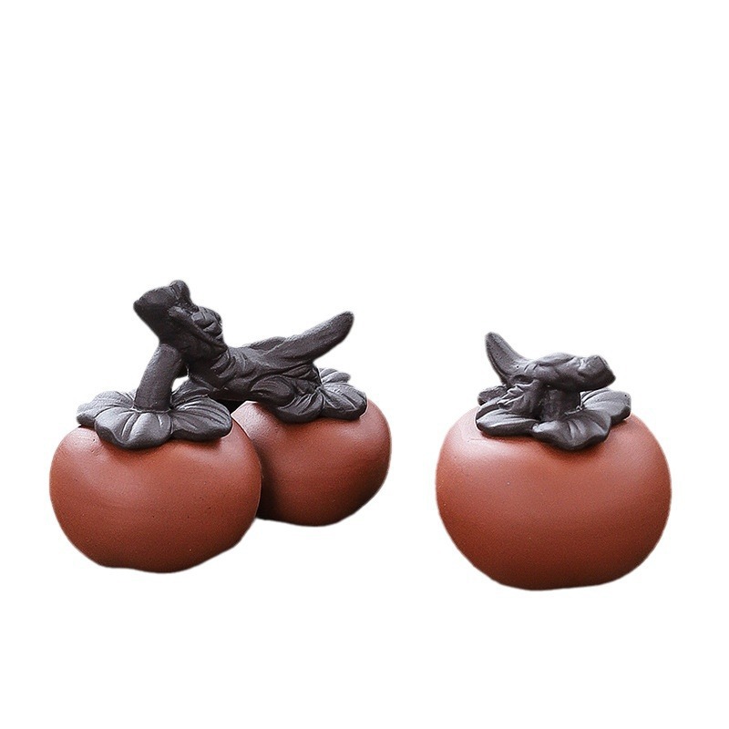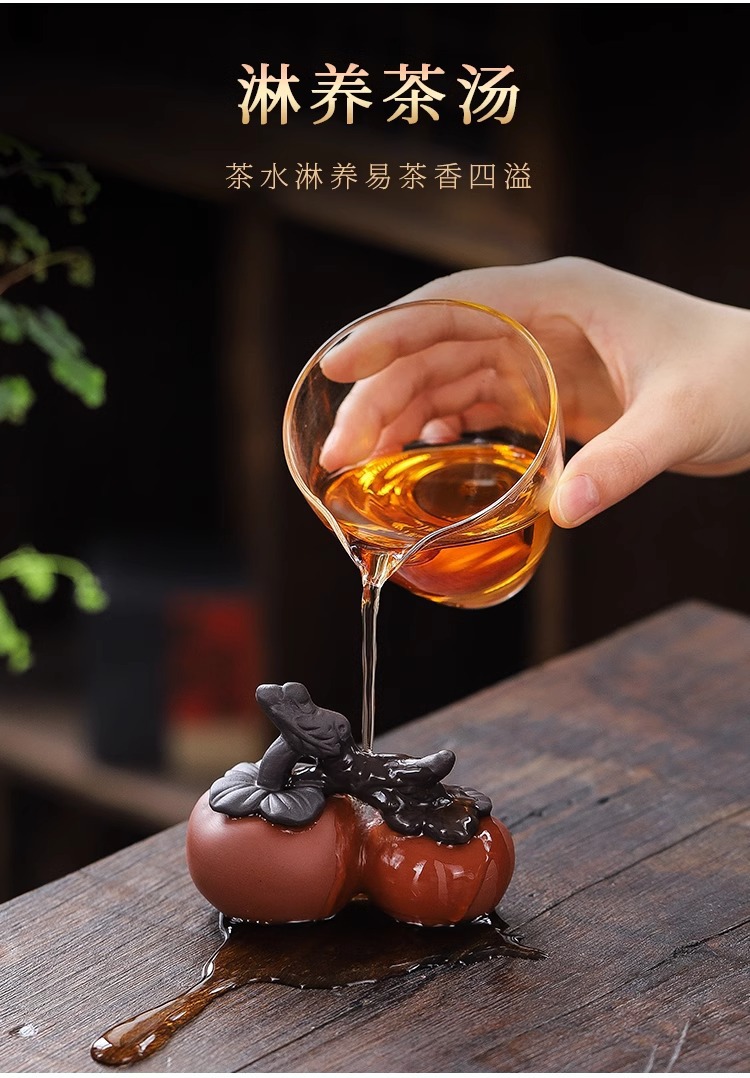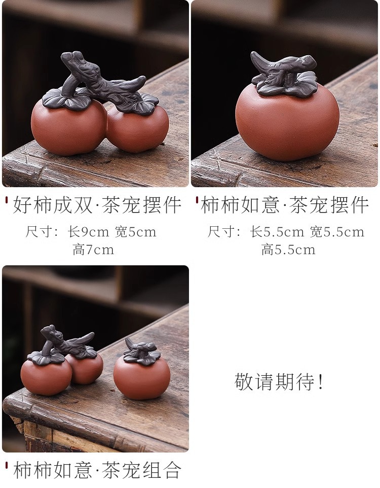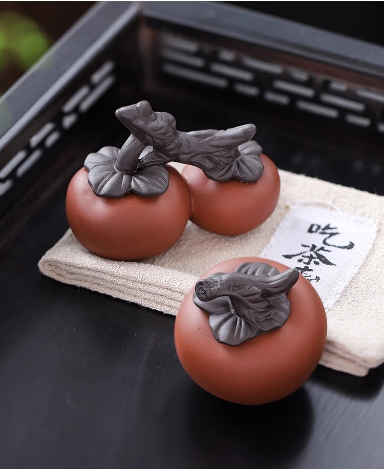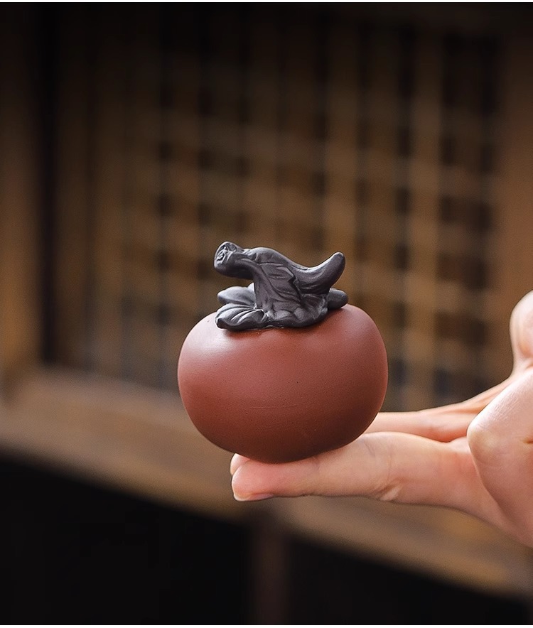 原矿紫砂柿子茶宠摆件盖置精品可养防真水果茶具小茶玩装饰工艺品