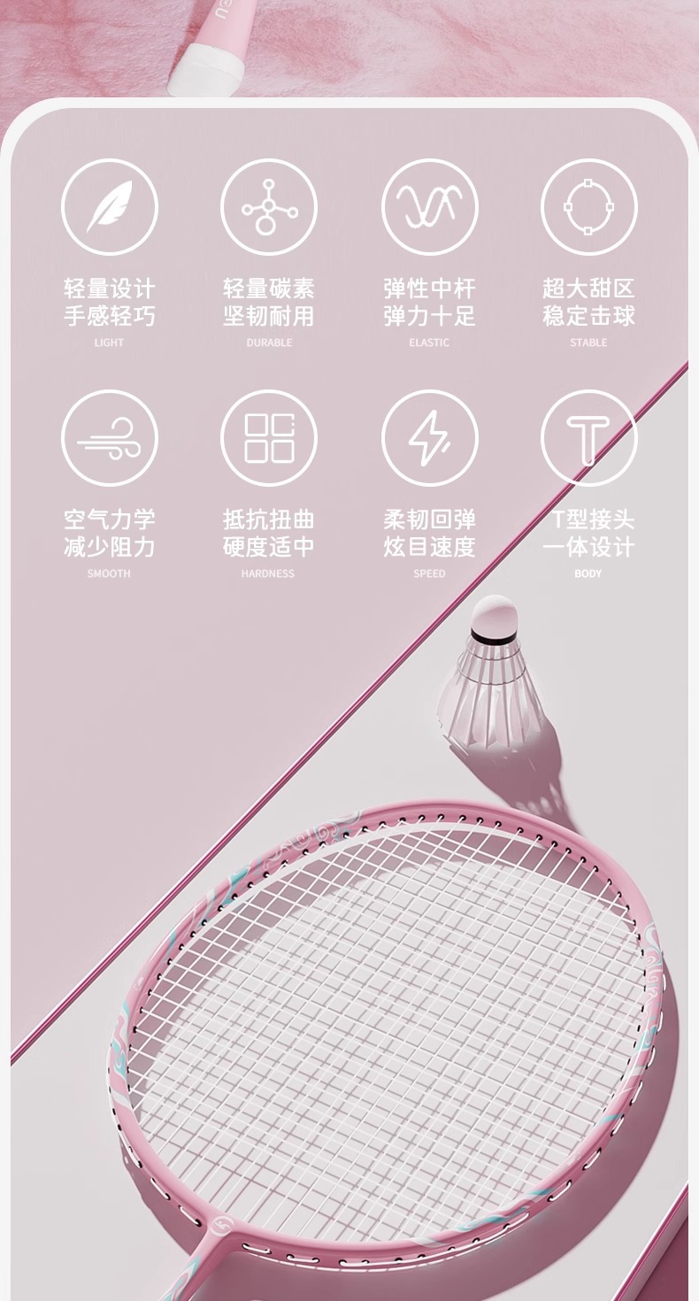 羽毛球拍正品旗舰店轻盈碳素纤维专业初学者女生成人单双拍套装