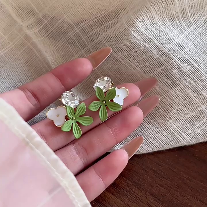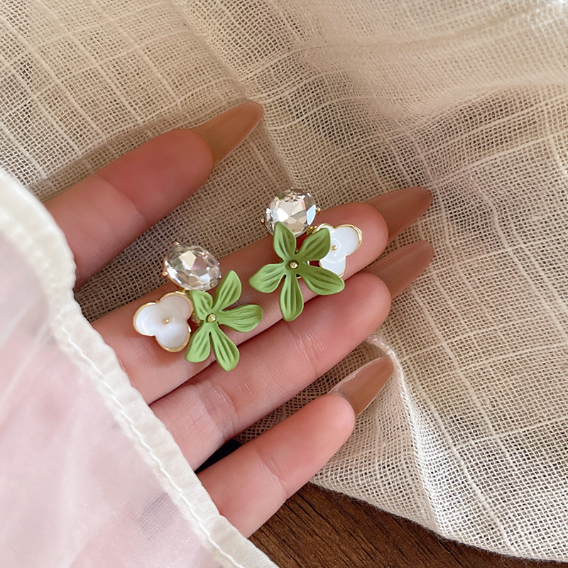 耳环饰品轻奢小众高级感超闪锆石花朵耳钉耳饰气质小清新花朵耳环