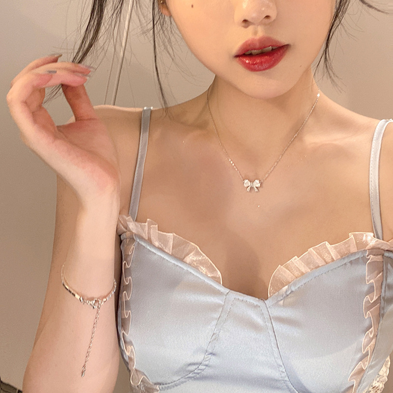 ins~纯欲风夏季甜美蝴蝶结项链女轻奢小众设计感锁骨链2025年新款