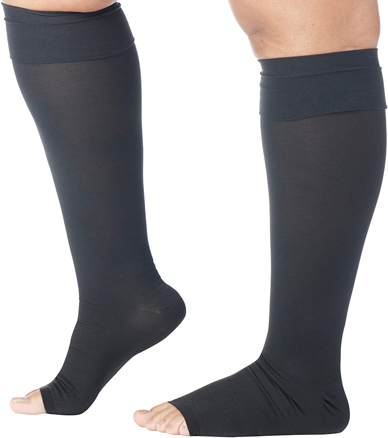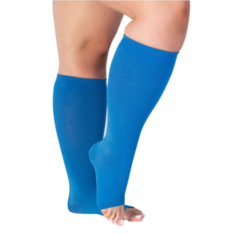小腿围加大码20-32毫米汞柱压缩袜彩色露趾中筒袜 梯度支撑压力袜
