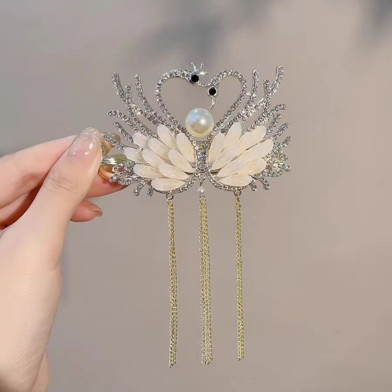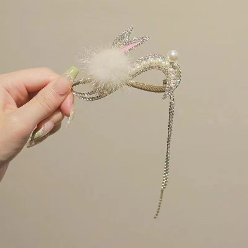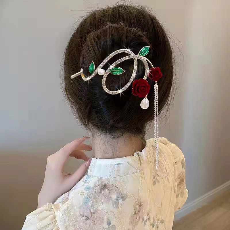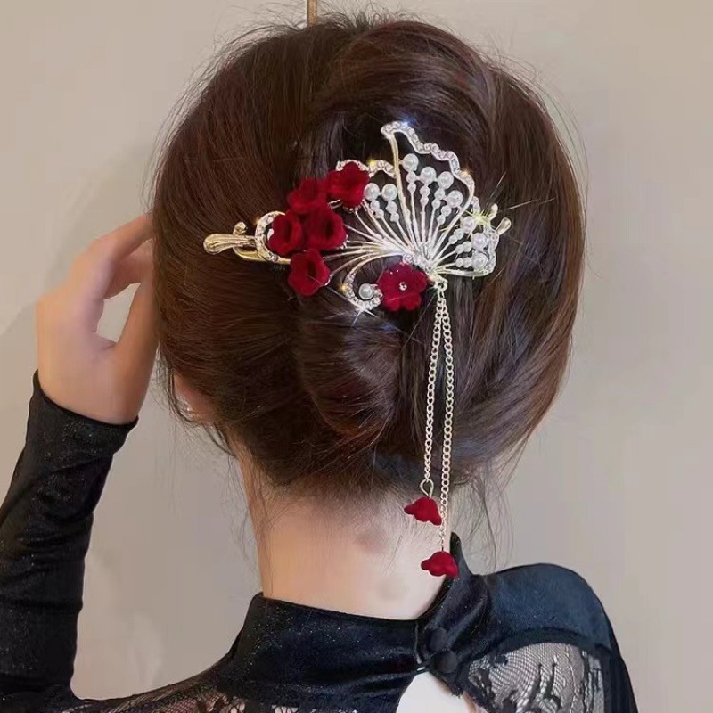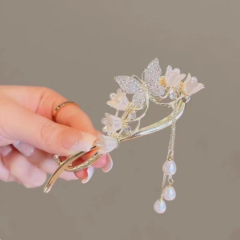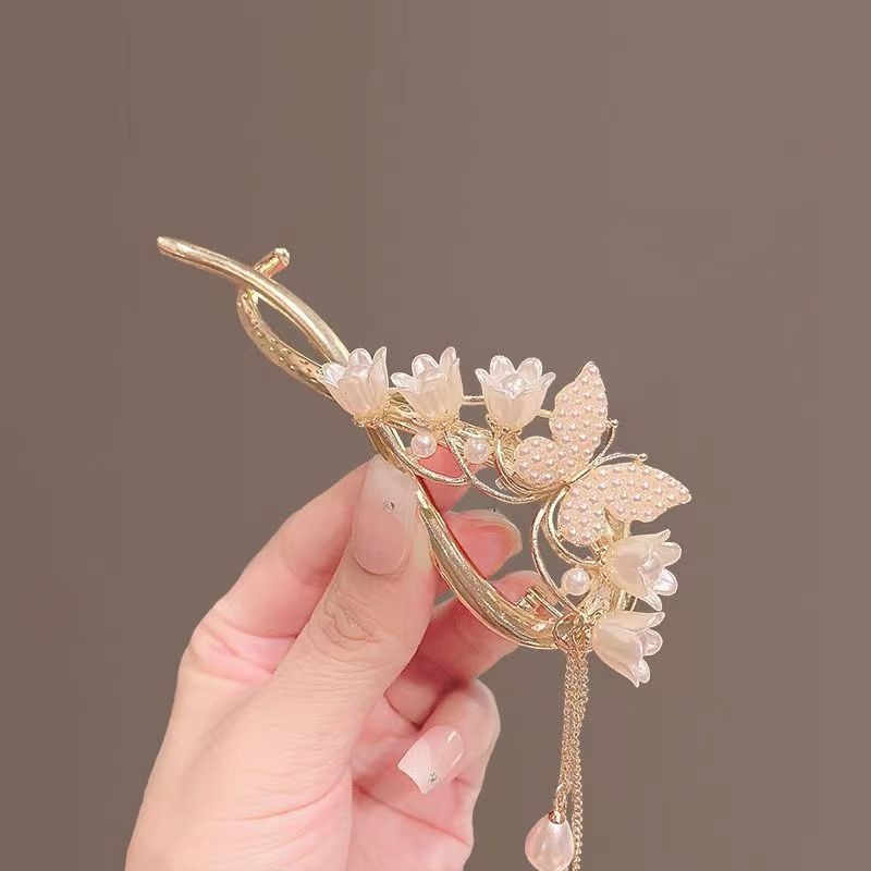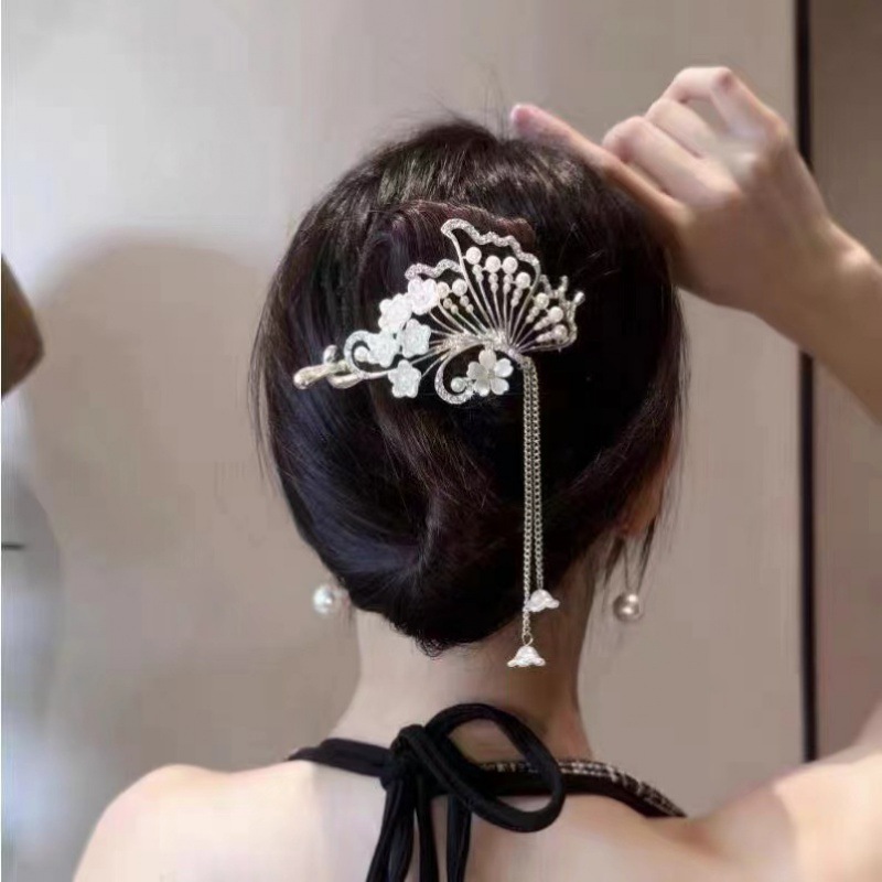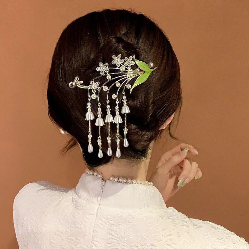 汉服铃兰花流苏发夹丸子头固定抓夹女感发扣气质半扎盘发发饰