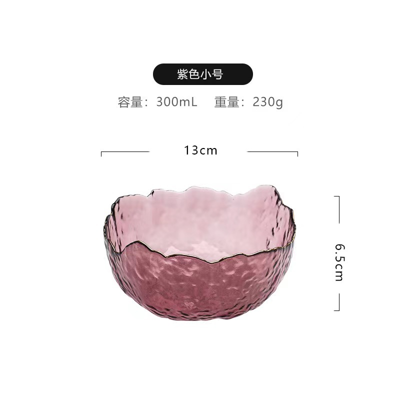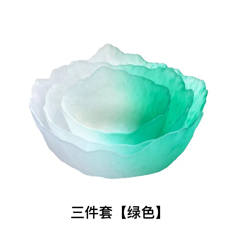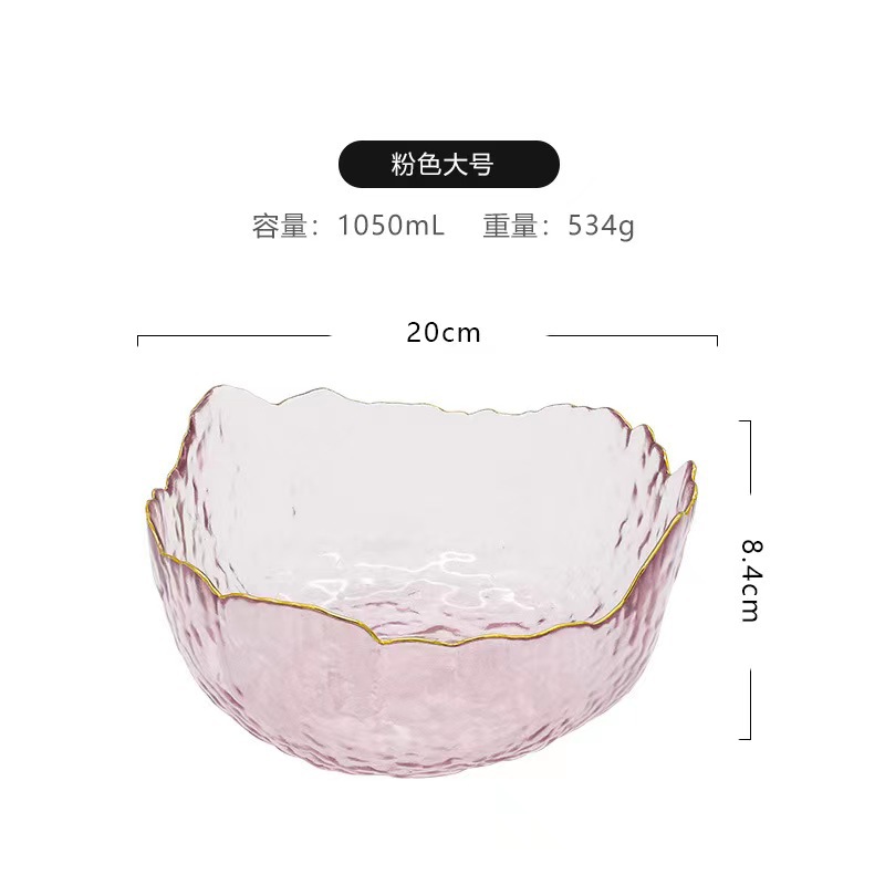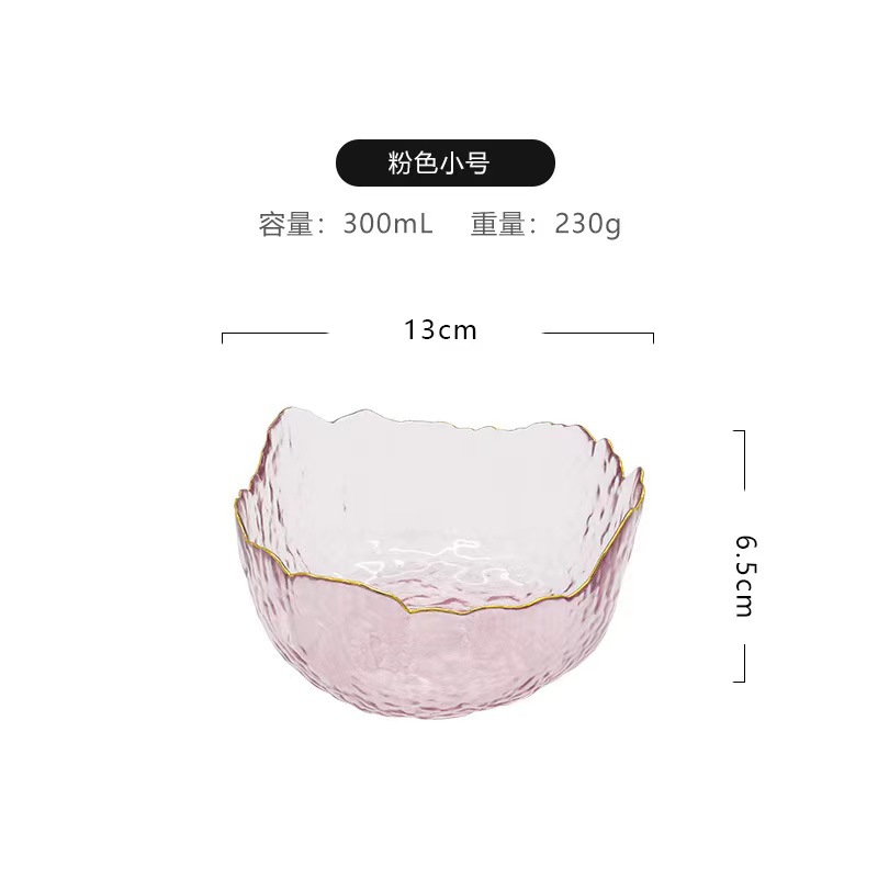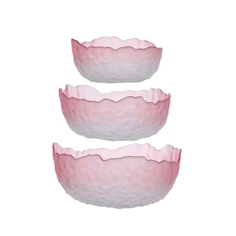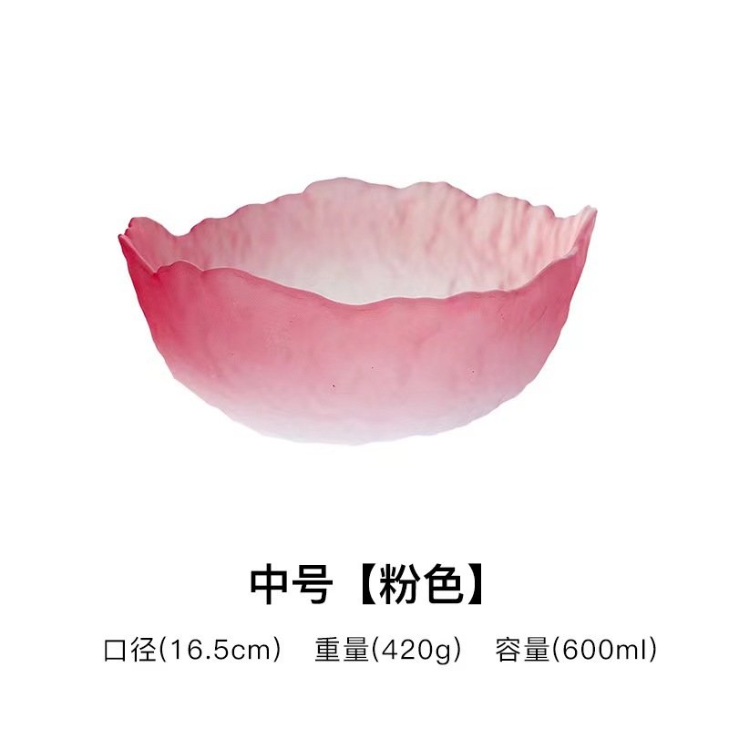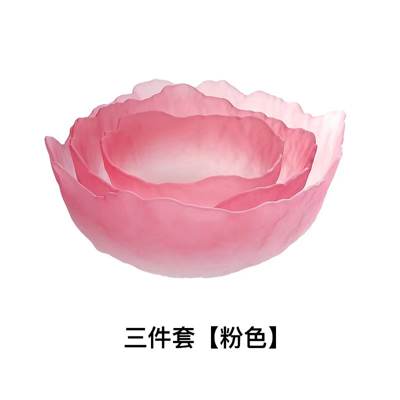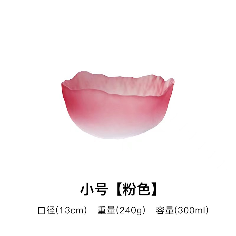 创意日式莲雾粉玻璃水果沙拉碗套装高颜值甜品碗轻奢简约家用果盘
