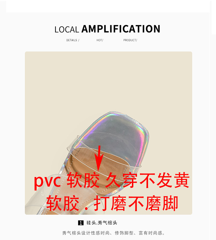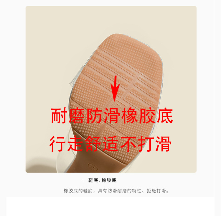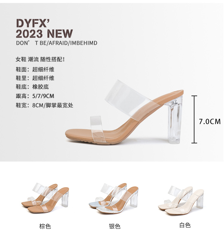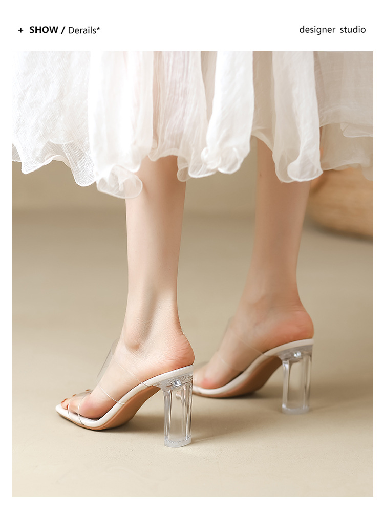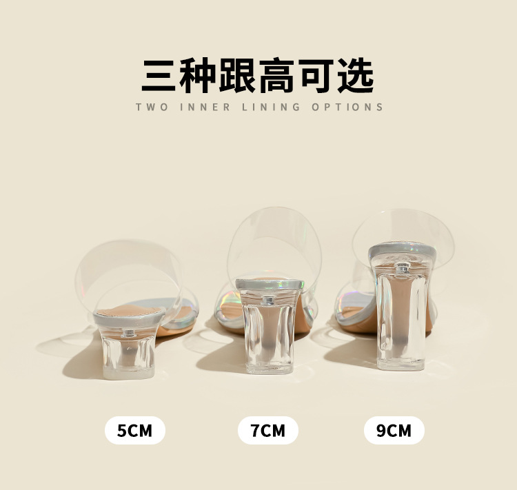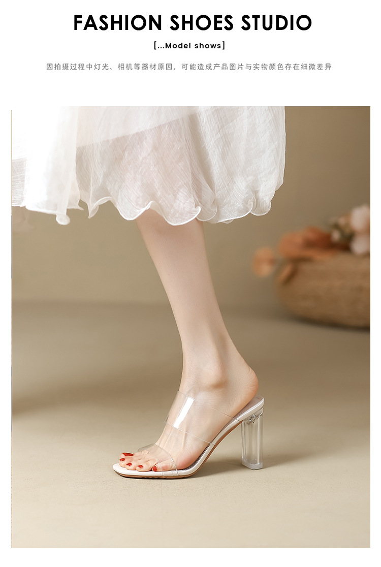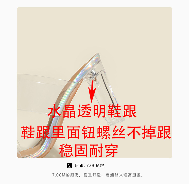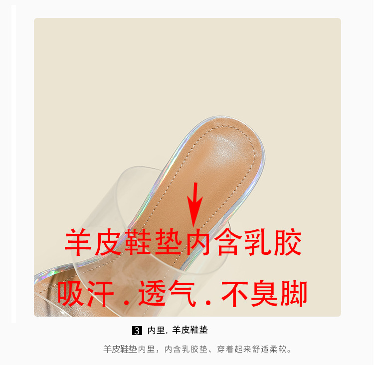 真皮高跟拖鞋女新款夏季韩版水晶跟中跟粗跟透明凉拖鞋一件代发