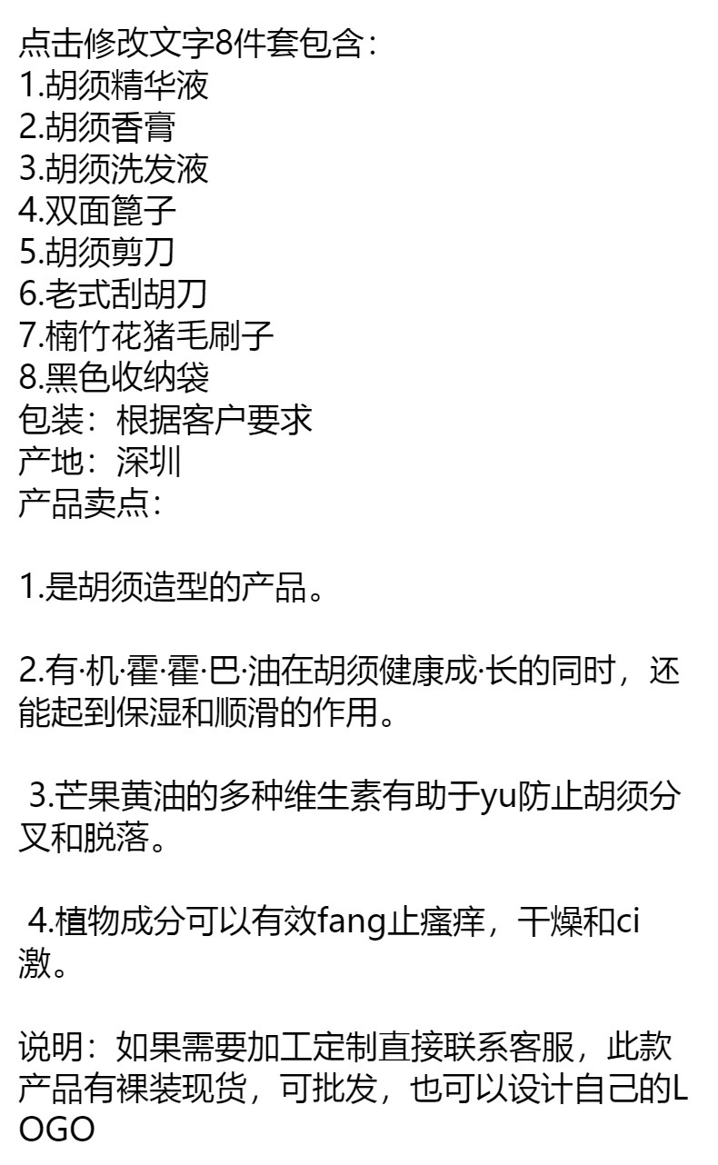 男士胡须套装胡须剪子胡须香脂胡子修剪护理套装双面梳胡须刮刀