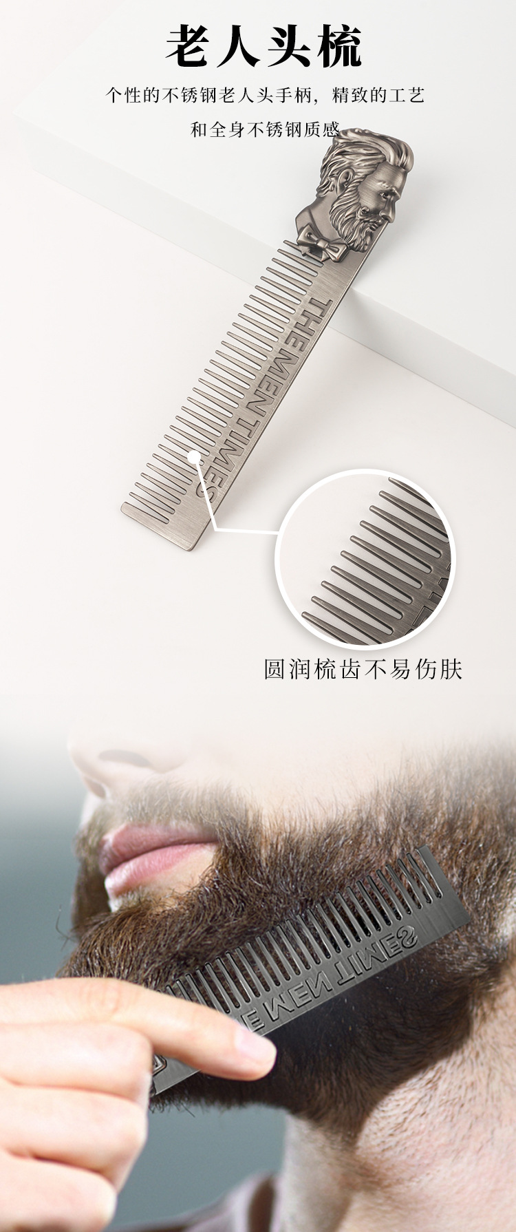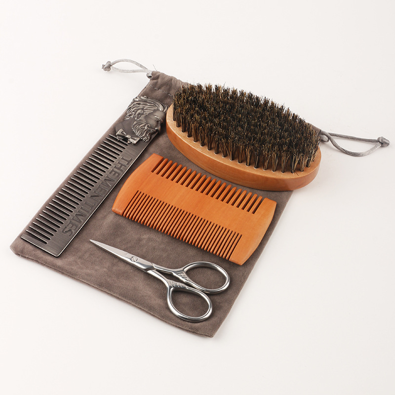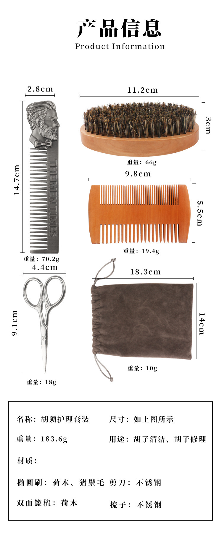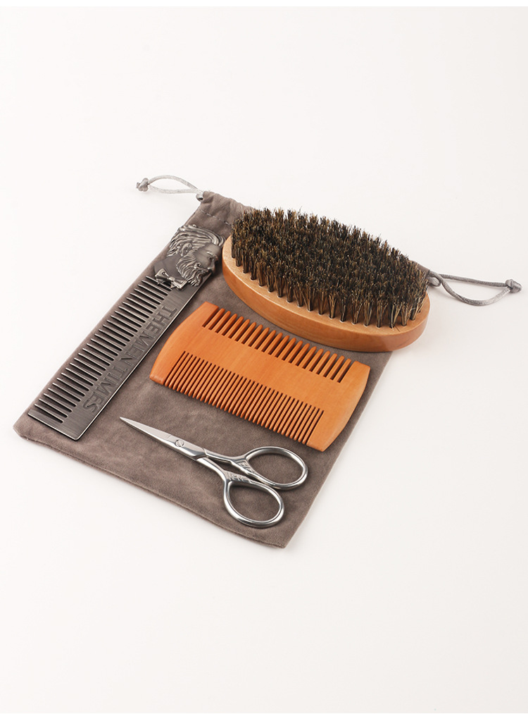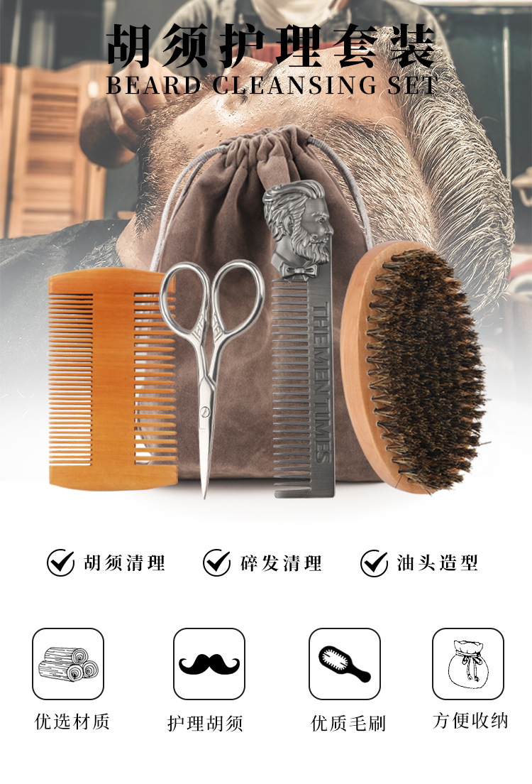 寻美男士胡须造型护理套装猪鬃毛胡子刷油头双面密齿梳子修理剪刀