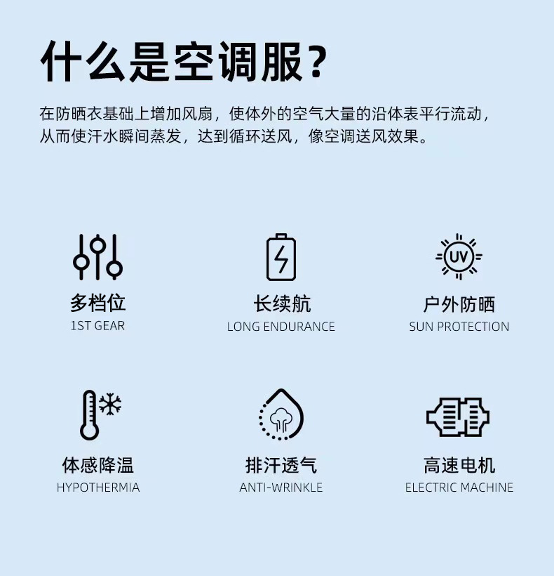 跨境夏季空调服户外防晒风扇衣防暑制冷骑行钓鱼服降温工地工作服