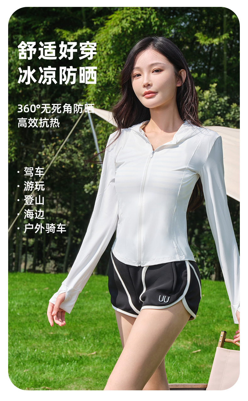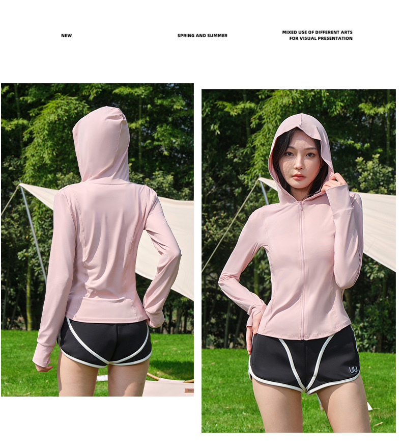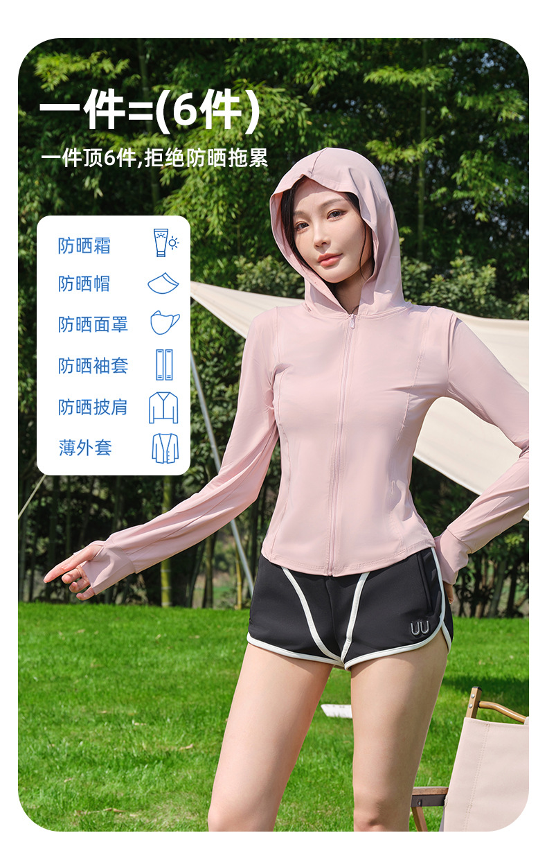 新瑜伽原纱防晒衣户外防紫外线宽松黑胶帽檐防晒衣夏季修身防晒服