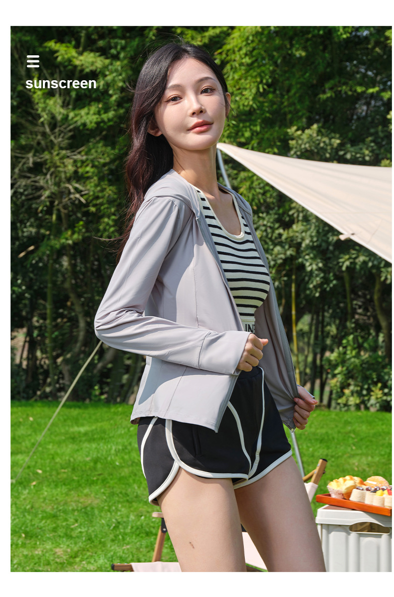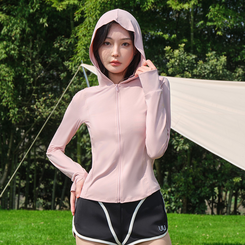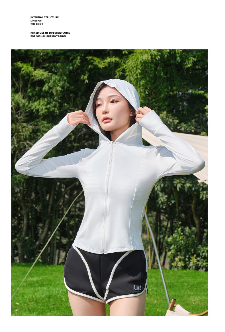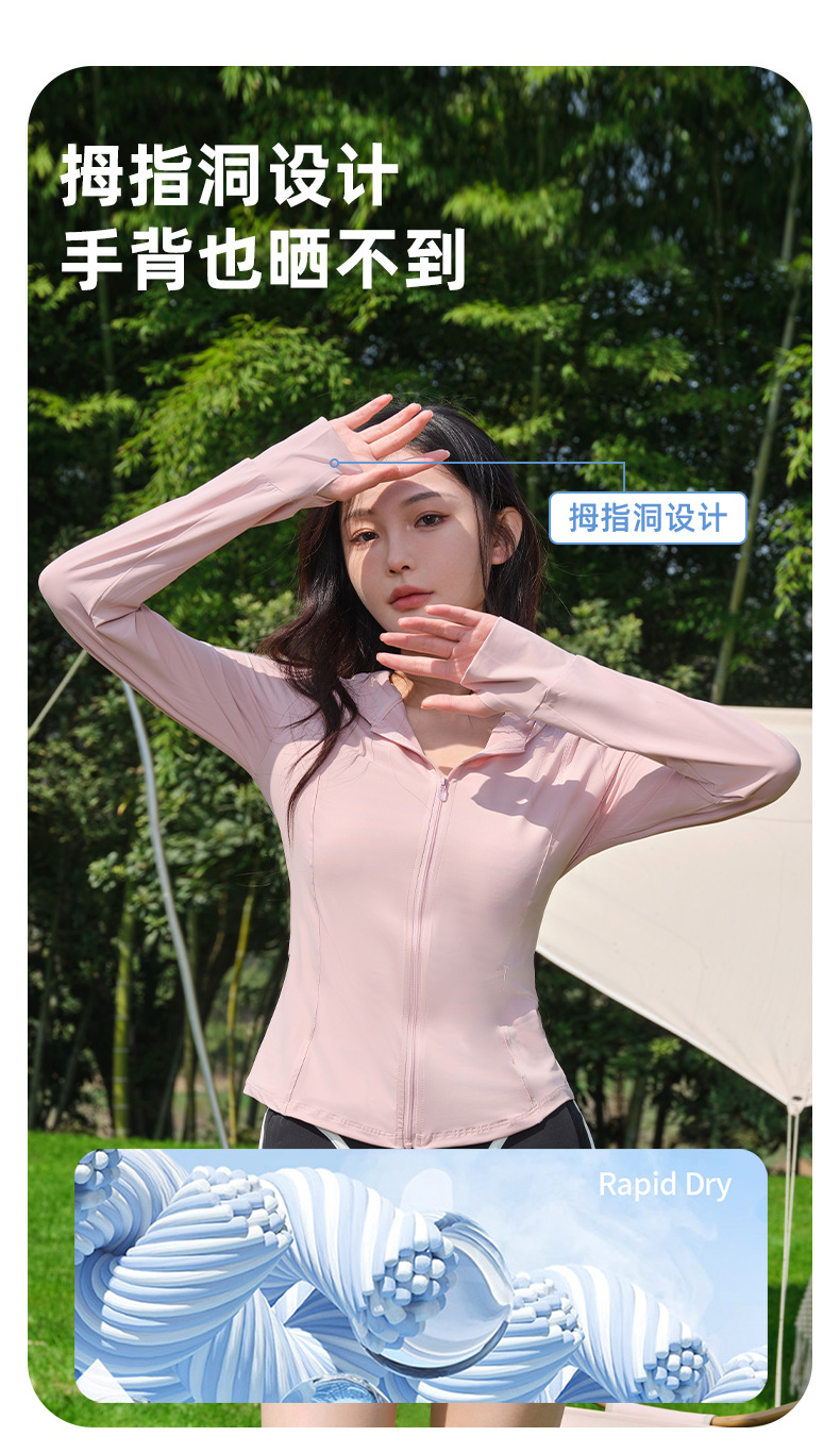 新瑜伽原纱防晒衣户外防紫外线宽松黑胶帽檐防晒衣夏季修身防晒服