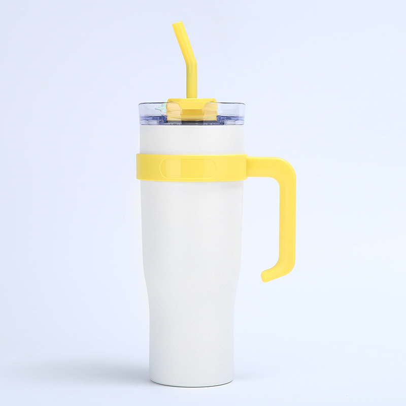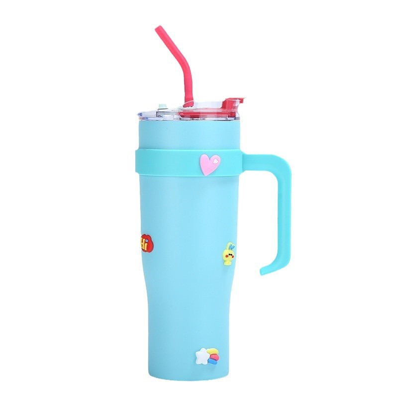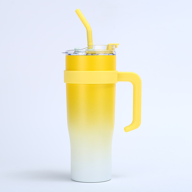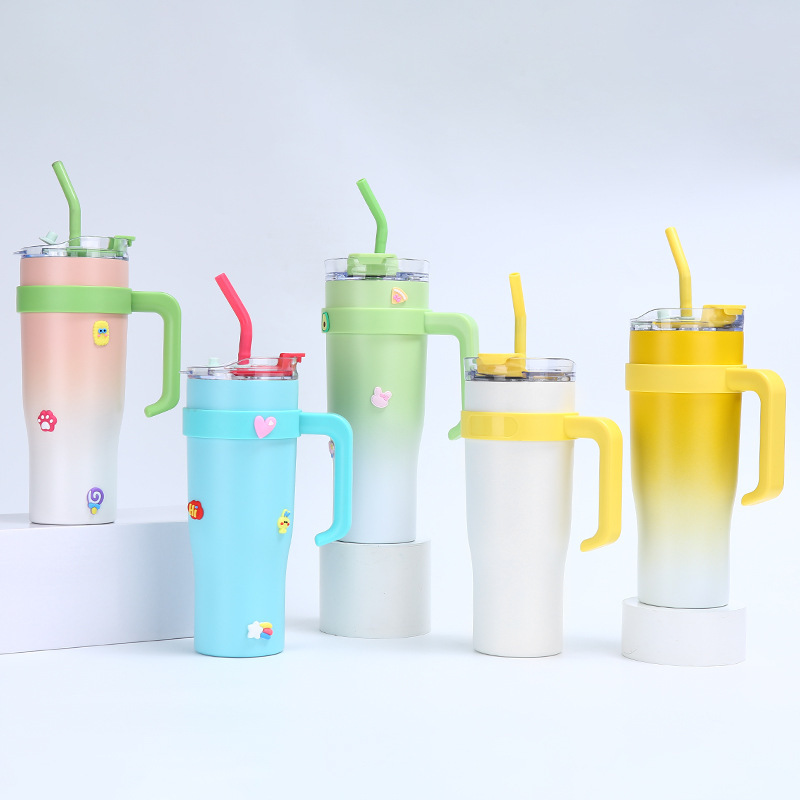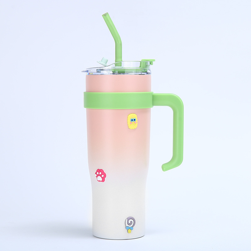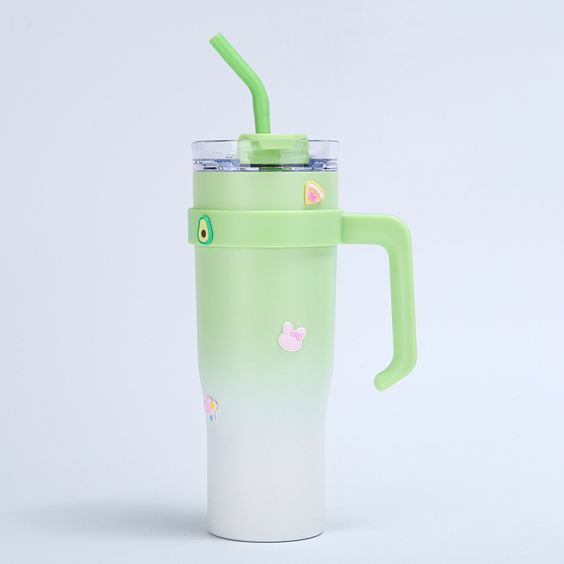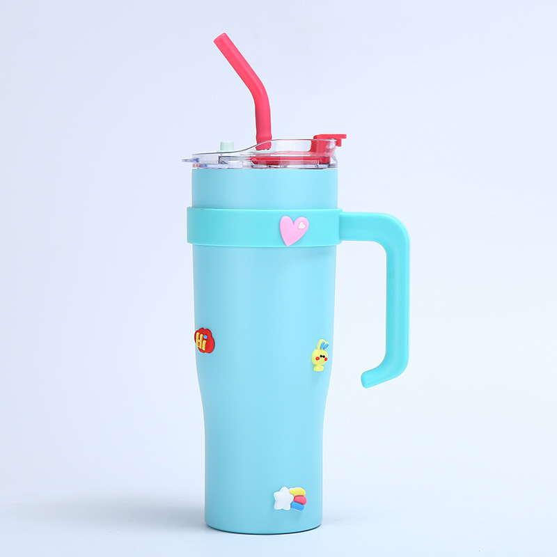 跨境高颜值不锈钢40oz手柄汽车杯带吸管双层真空保温杯水杯冰霸杯