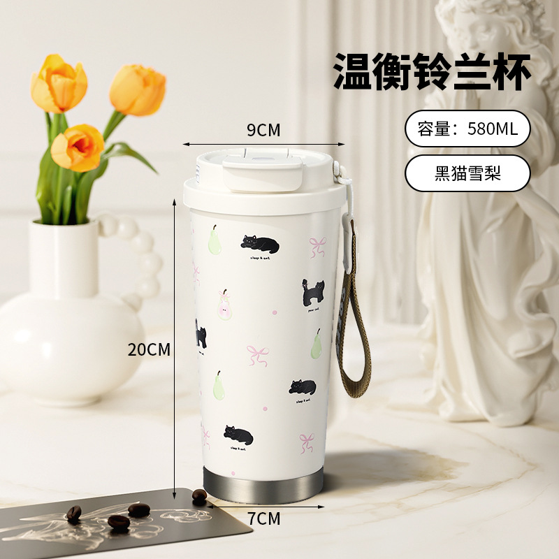 定制铃兰保温杯大容量男士用不锈钢咖啡杯高颜值便携汽车水杯