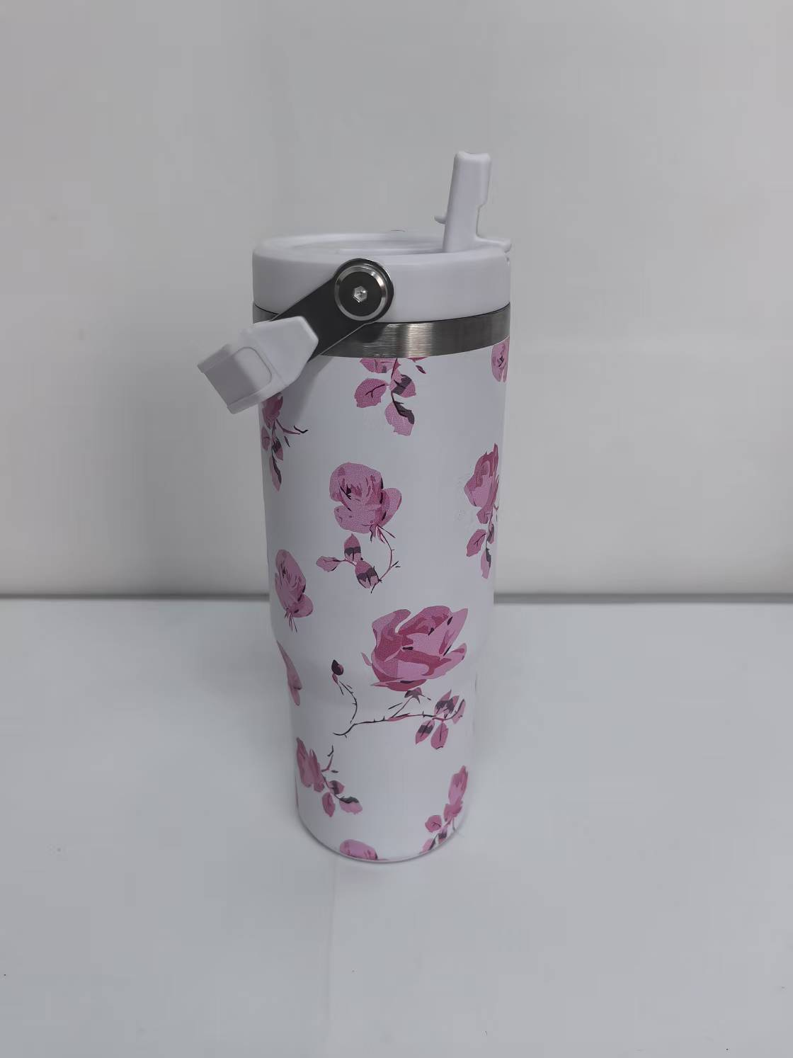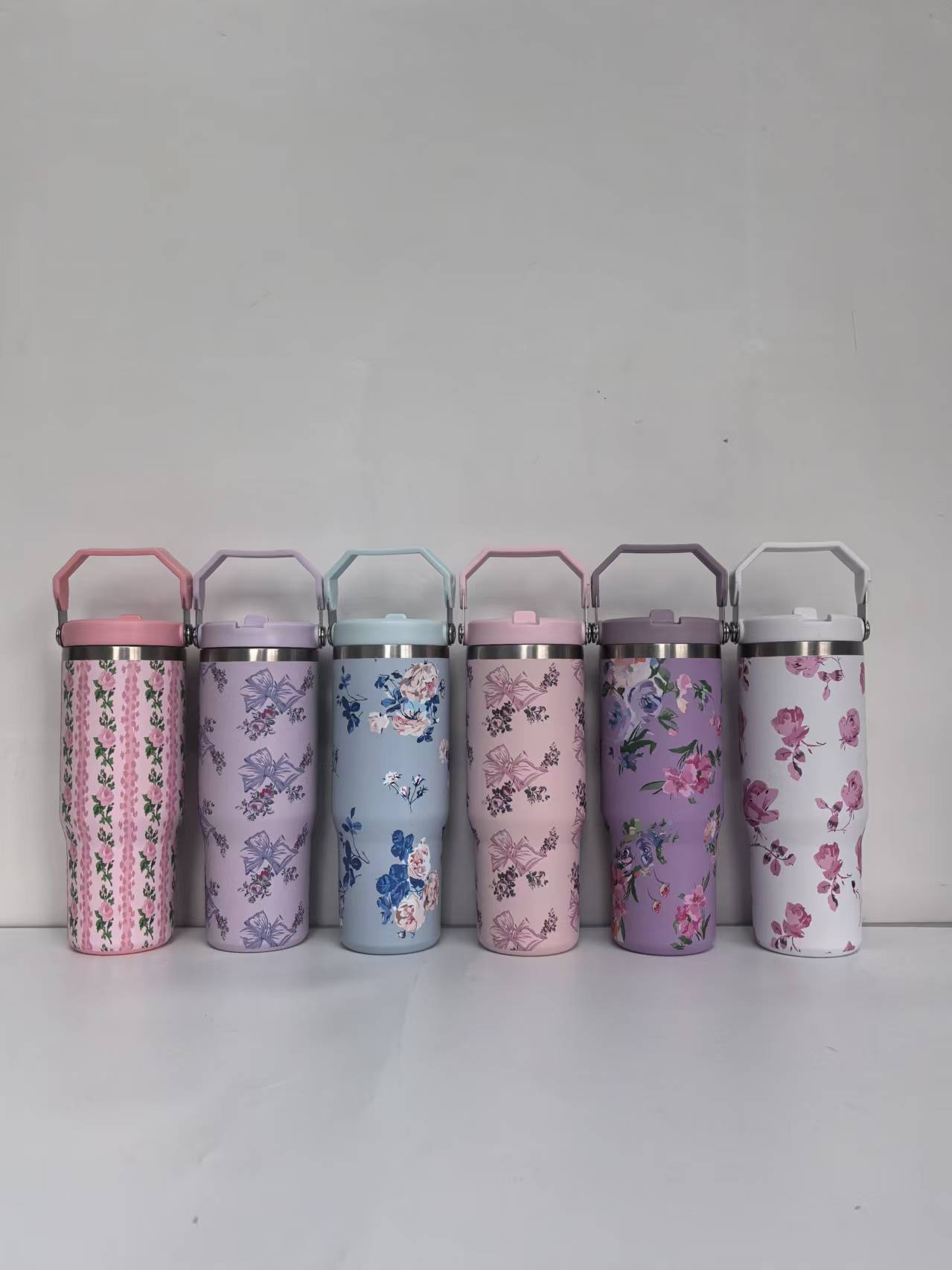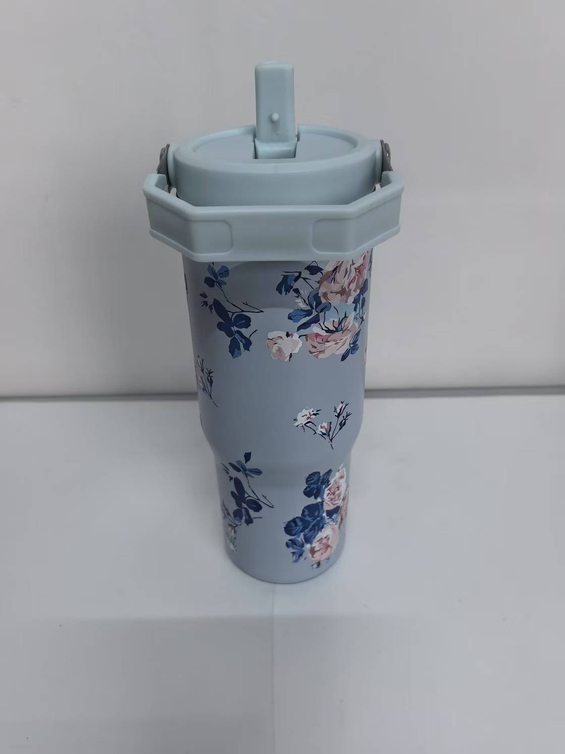 跨境新款冰霸杯30oz手提5D花色保温杯保冷304不锈钢吸管汽车杯