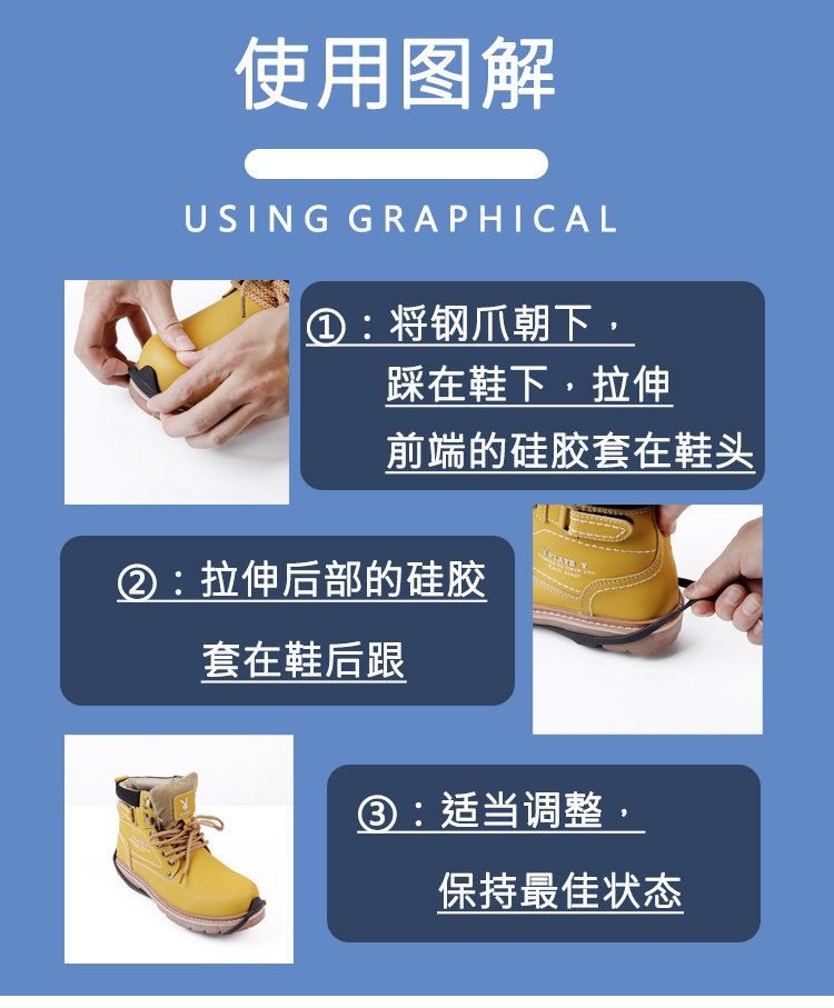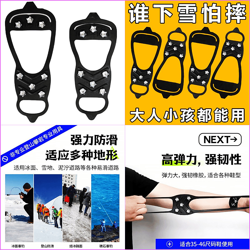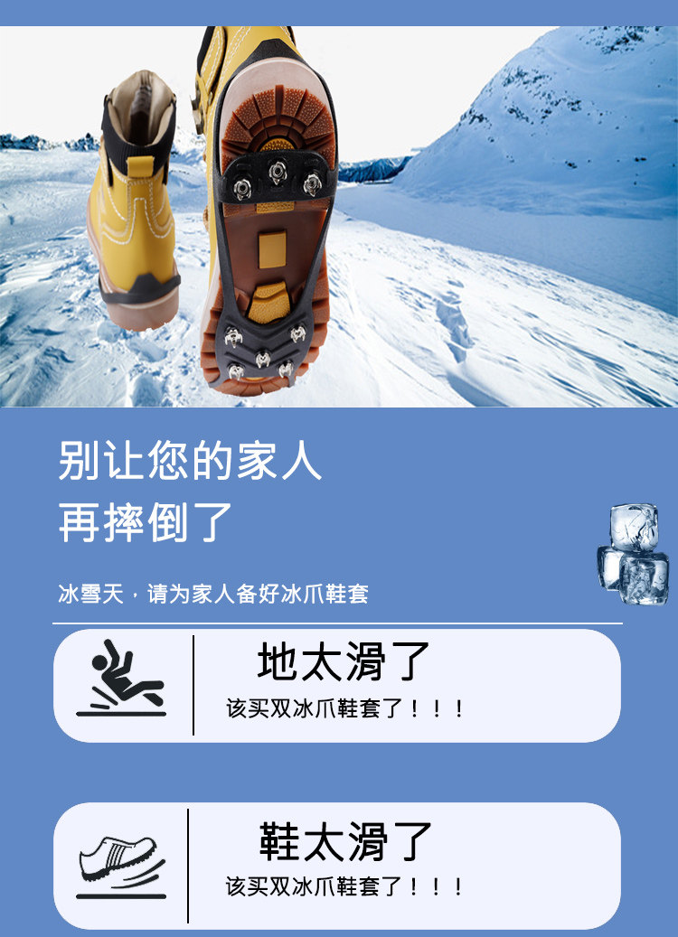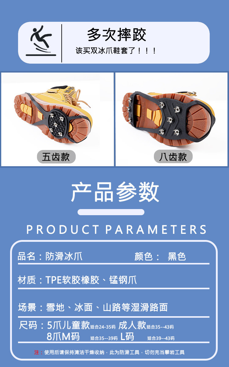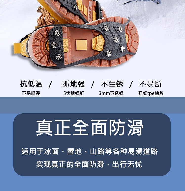 户外冰上雪地防滑冰爪鞋套冬季鞋钉鞋底神器登山五齿下雪儿童冰抓