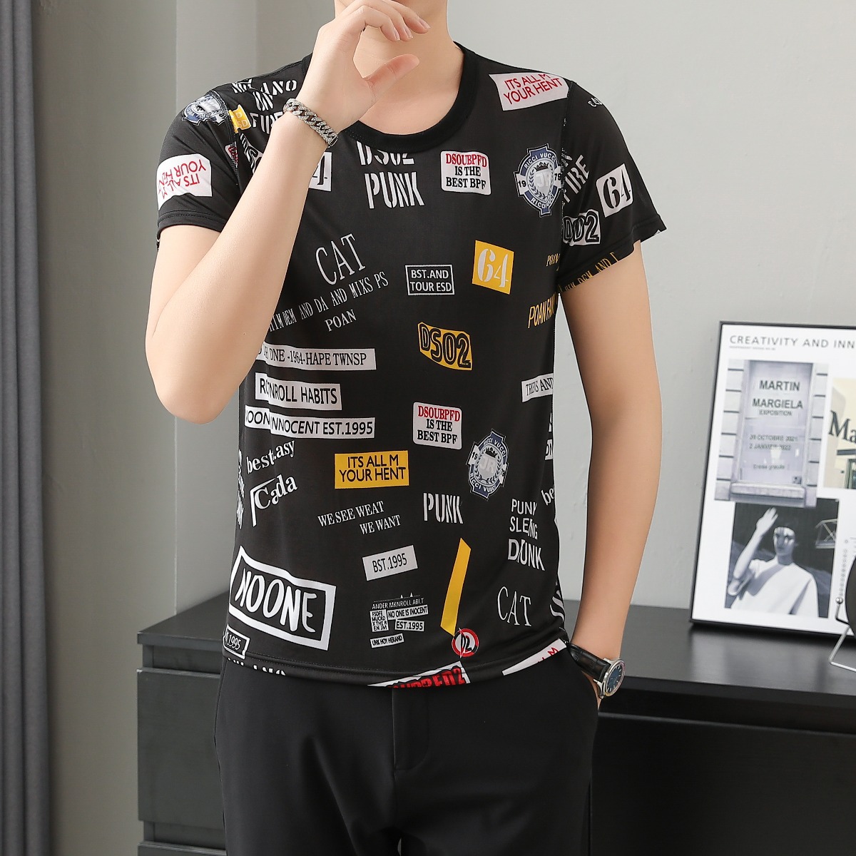 冰丝短袖t恤男士夏季运动休闲半袖男装速干宽松透气潮流男上衣批