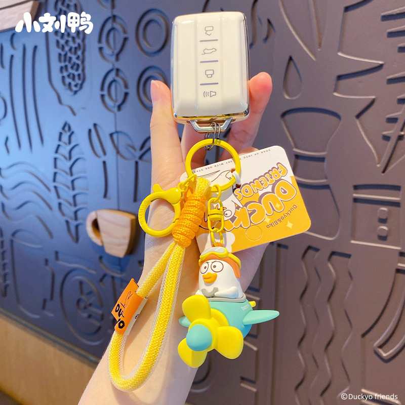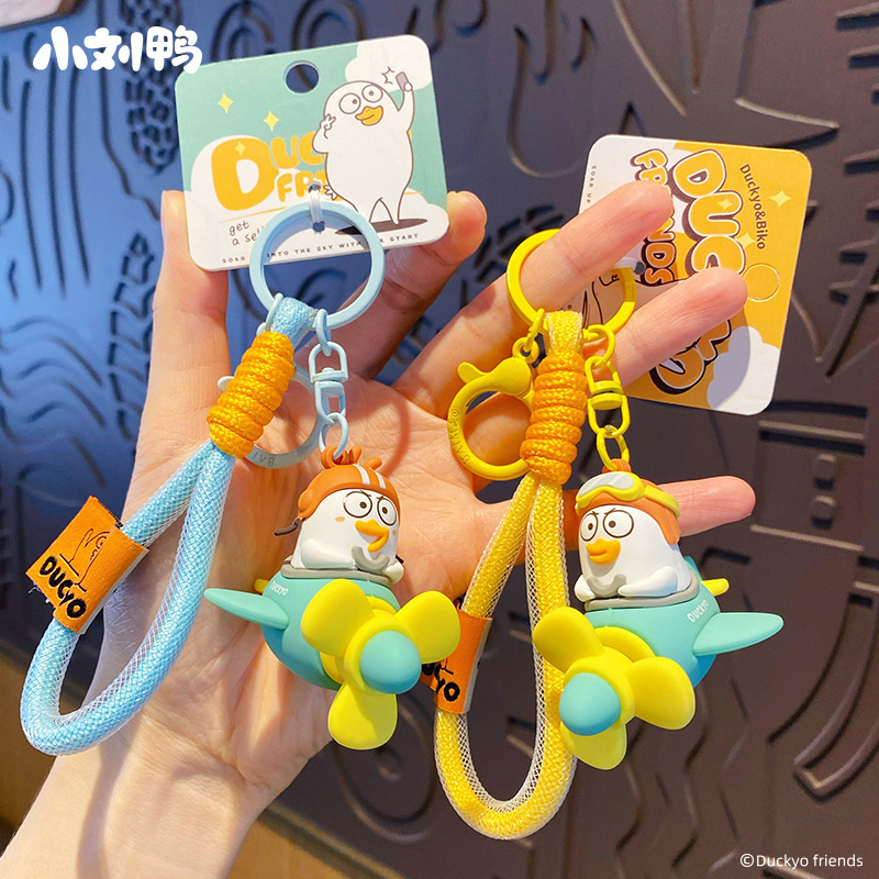 百茂正版小刘鸭旋转飞机钥匙扣可爱小兔帽汽车钥匙链情侣书包挂件