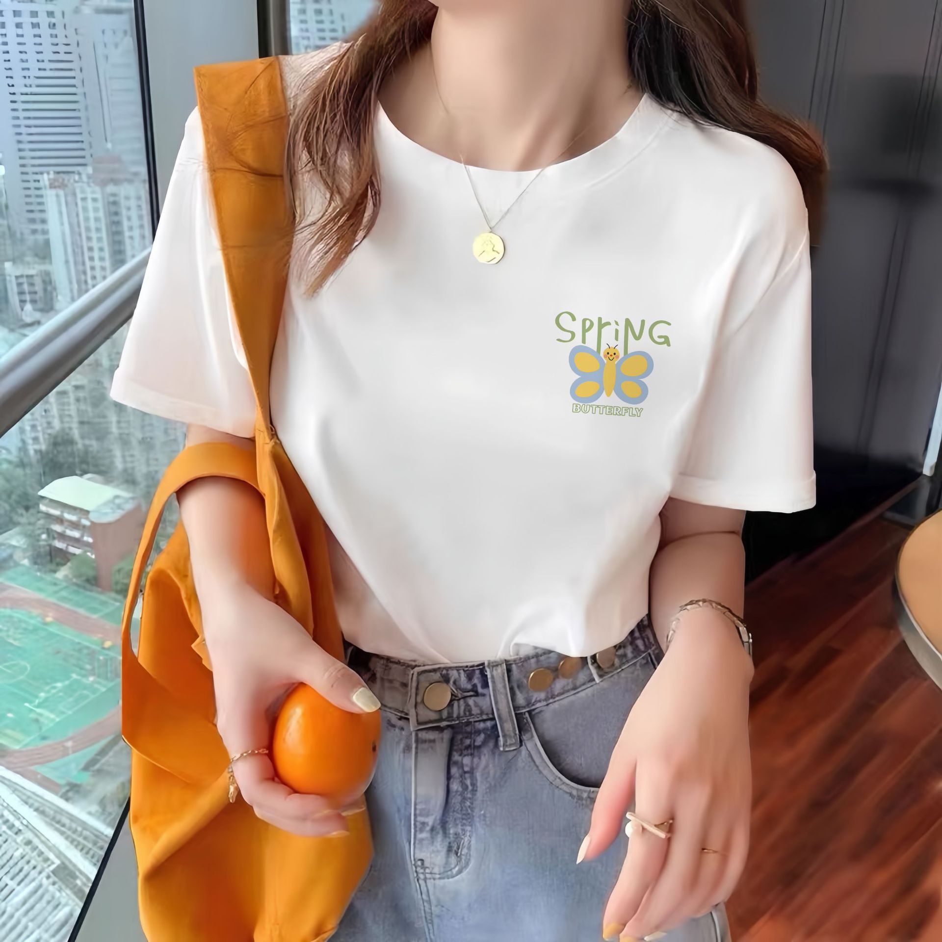 纯棉短袖t恤女夏季韩版宽松圆领洋气印花百搭原宿风上衣潮流女装