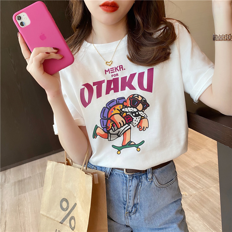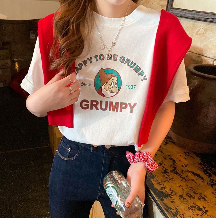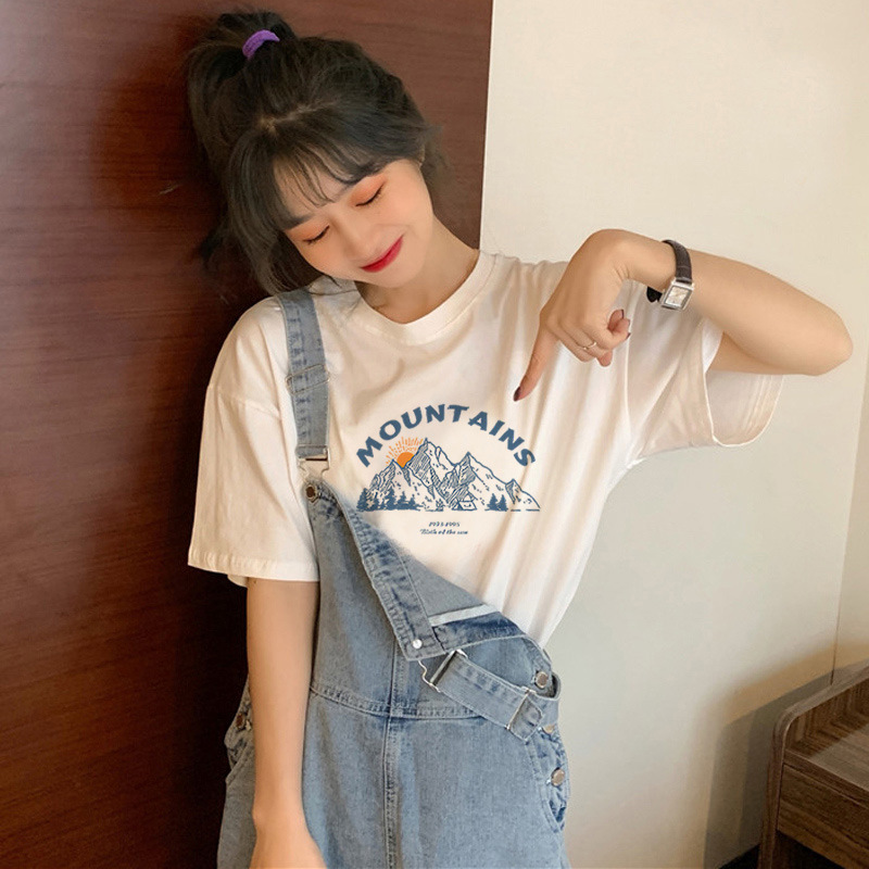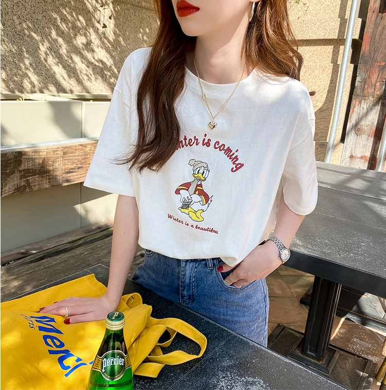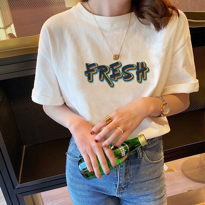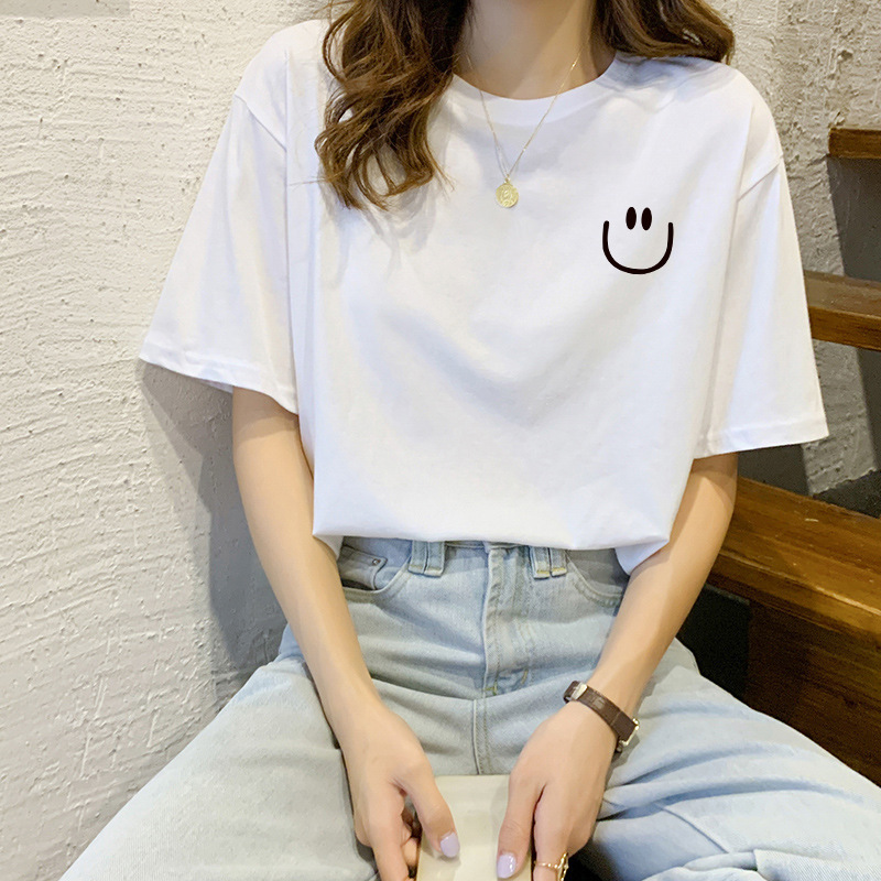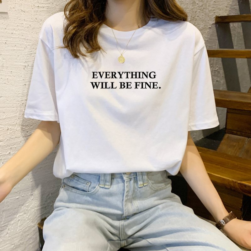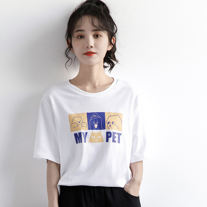 2023夏季长袖纯棉短袖T恤宽松韩版学生百搭白色半袖体恤衣服ins