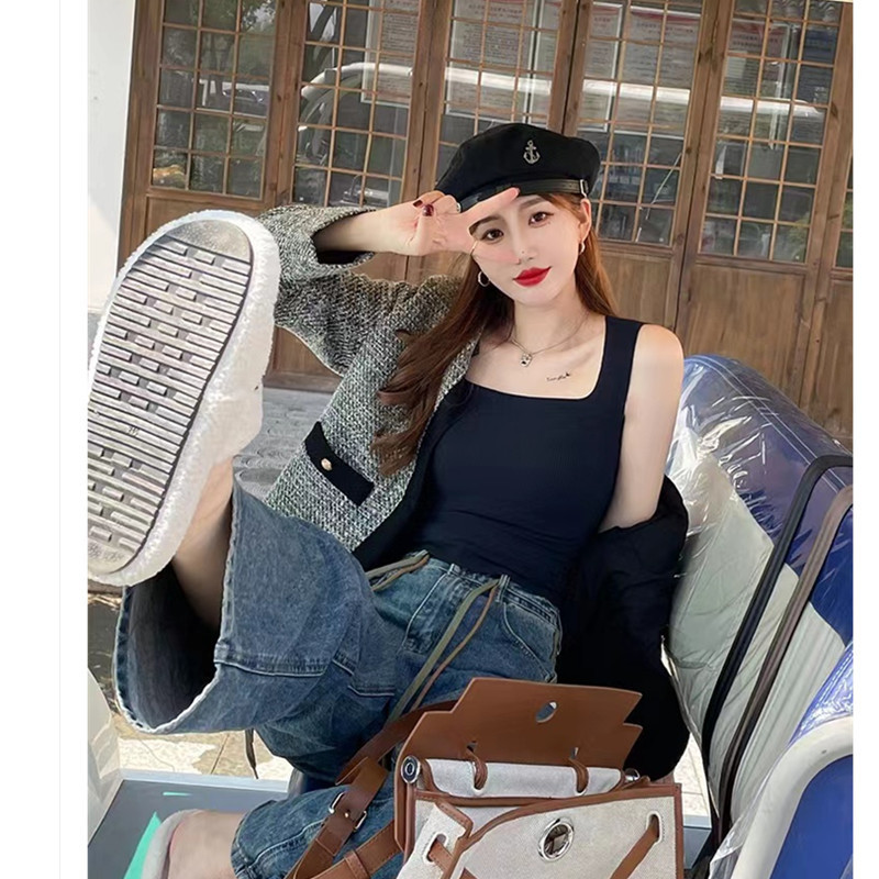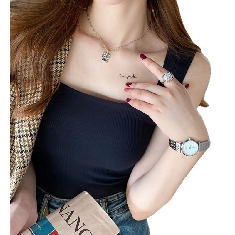 冰丝美背宽肩方领螺纹背心女带胸垫一体杯内搭外穿无痕吊带背心女