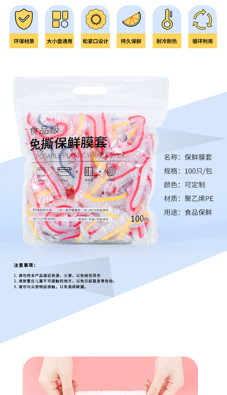 彩色松紧一次性PE保鲜套剩菜冰箱保鲜碗罩家用食品级保鲜膜套批发