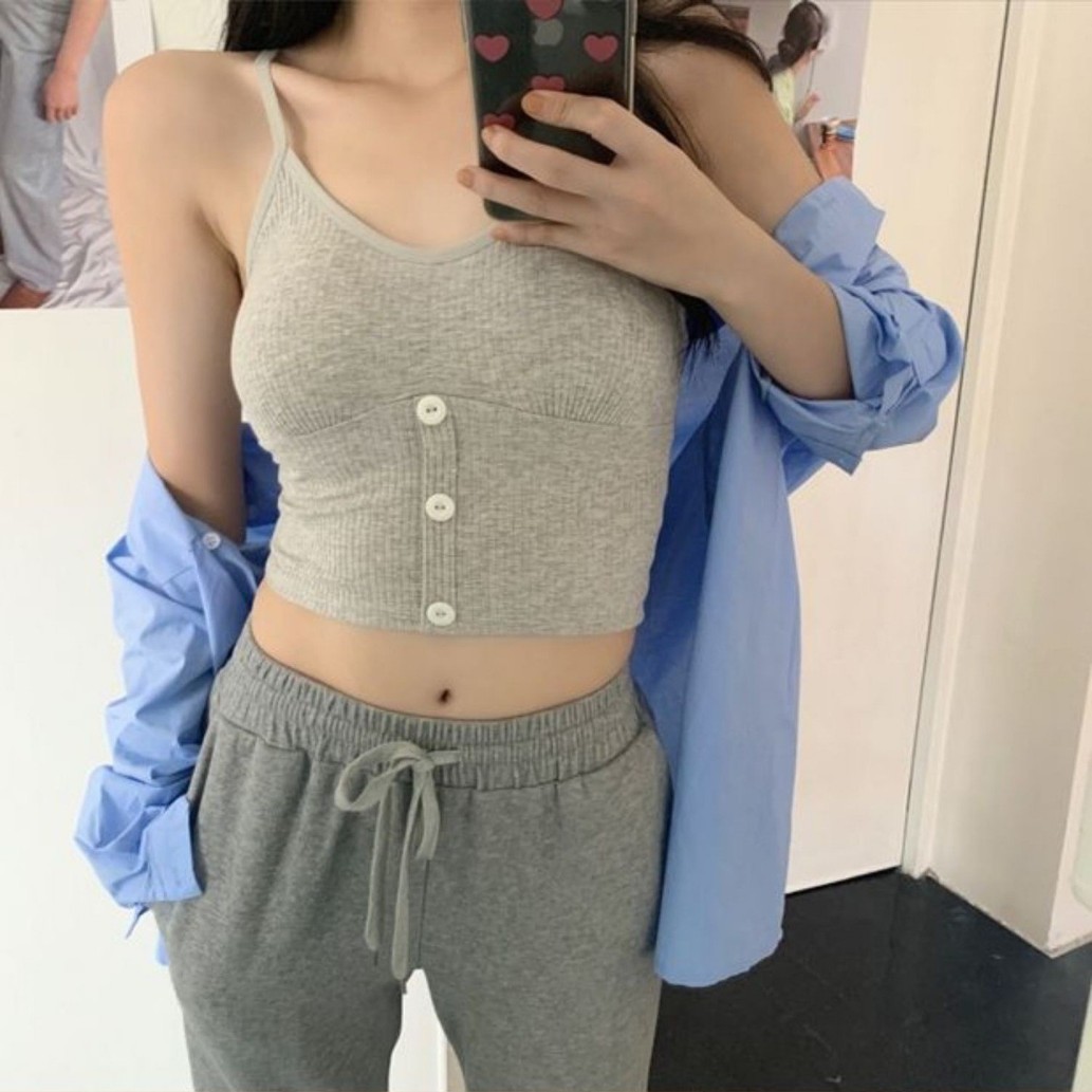 原版纯棉质量新款韩版纽扣纯色吊带背心少女内搭外穿修身无袖上衣