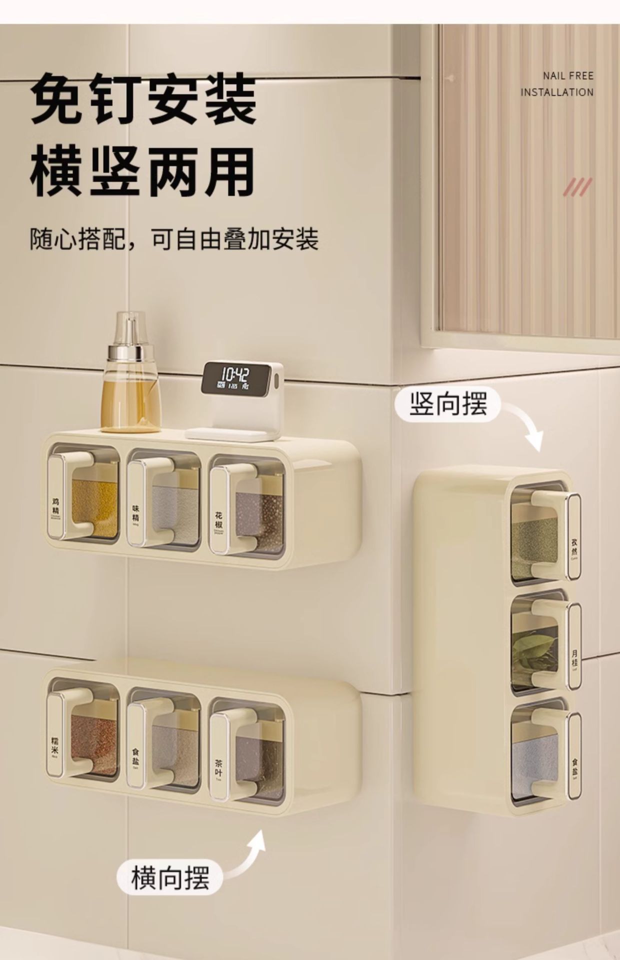 调料盒壁挂厨房盐味精佐料调味品收纳盒家用高端墙挂式调味罐套装
