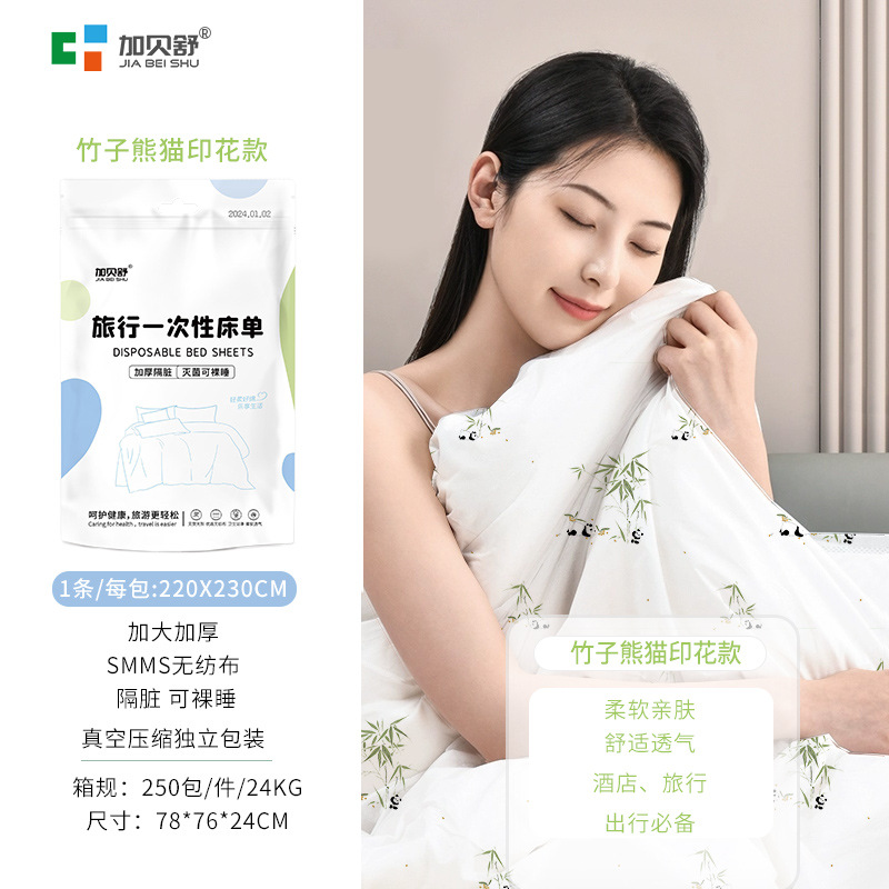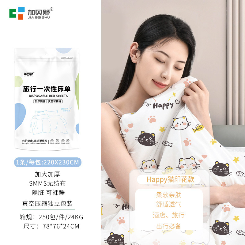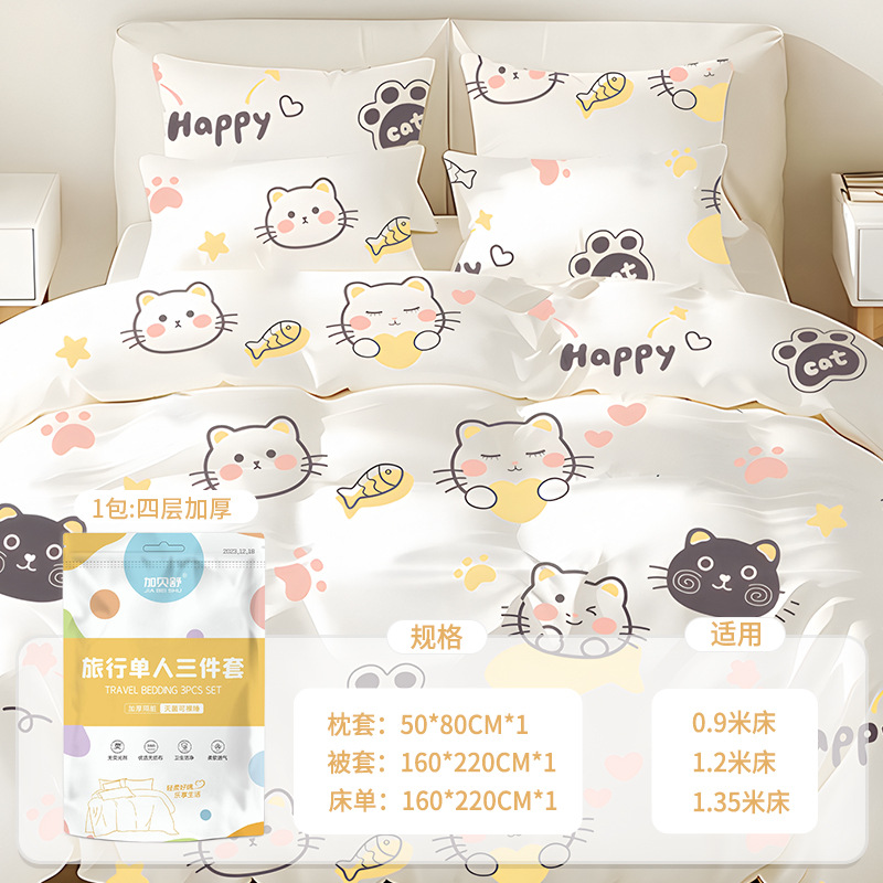 一次性床单四件套卡通印花被套枕套酒店出差便携床单双人床上用品