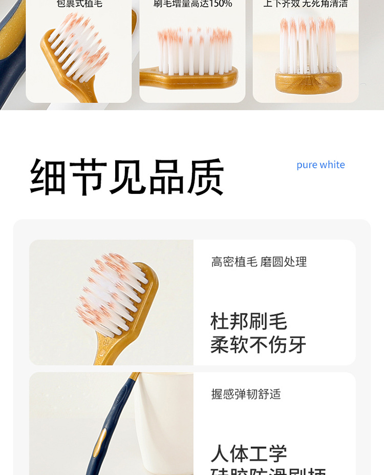 密丝柔宽头软毛牙刷正品山姆同款细毛护龈家庭装成人男士女士批发