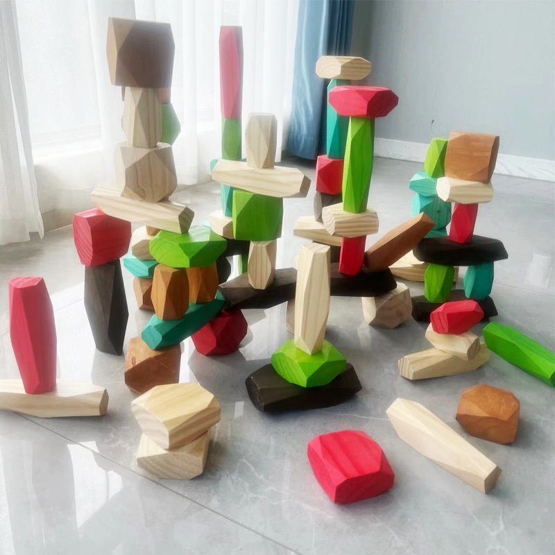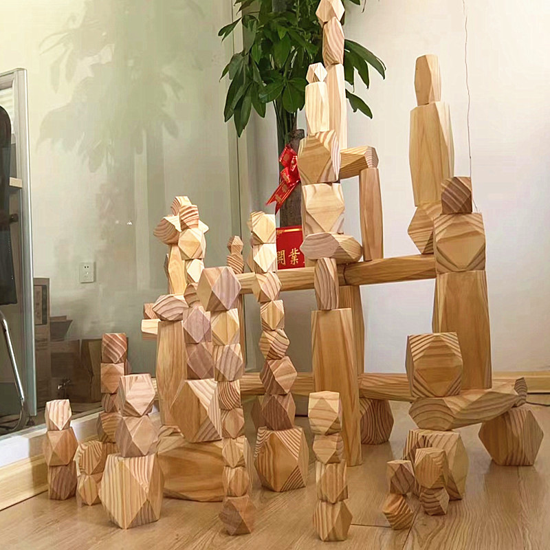 大号木质叠石头幼儿园区角建构拼搭大积木早教机构感官开放性教具