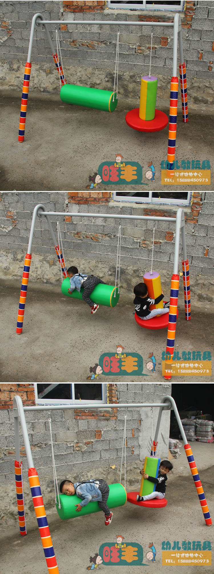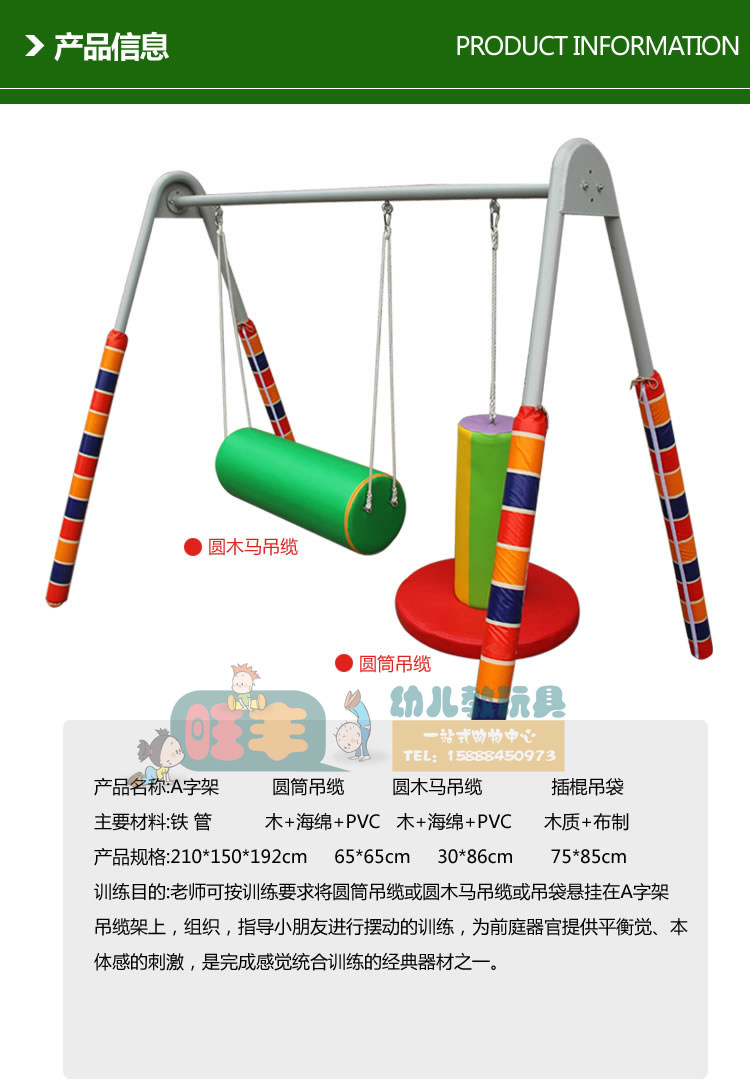 感统训练器材A字架 吊缆竖抱筒圆桶木马横抱筒插棍吊袋吊缆组全套