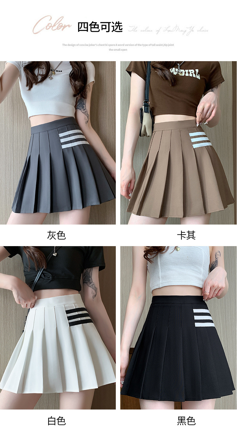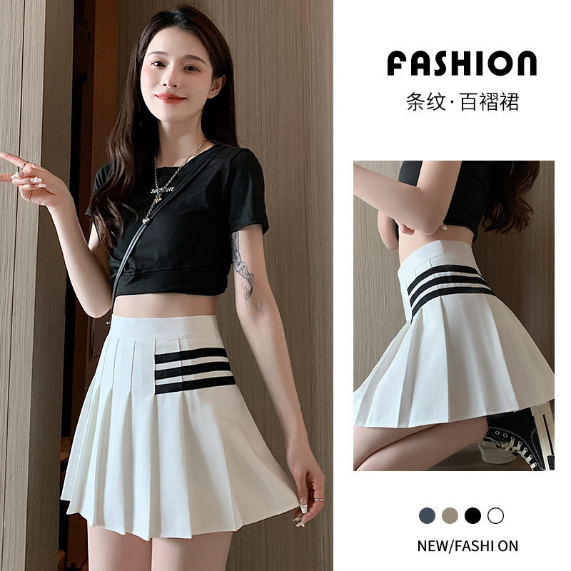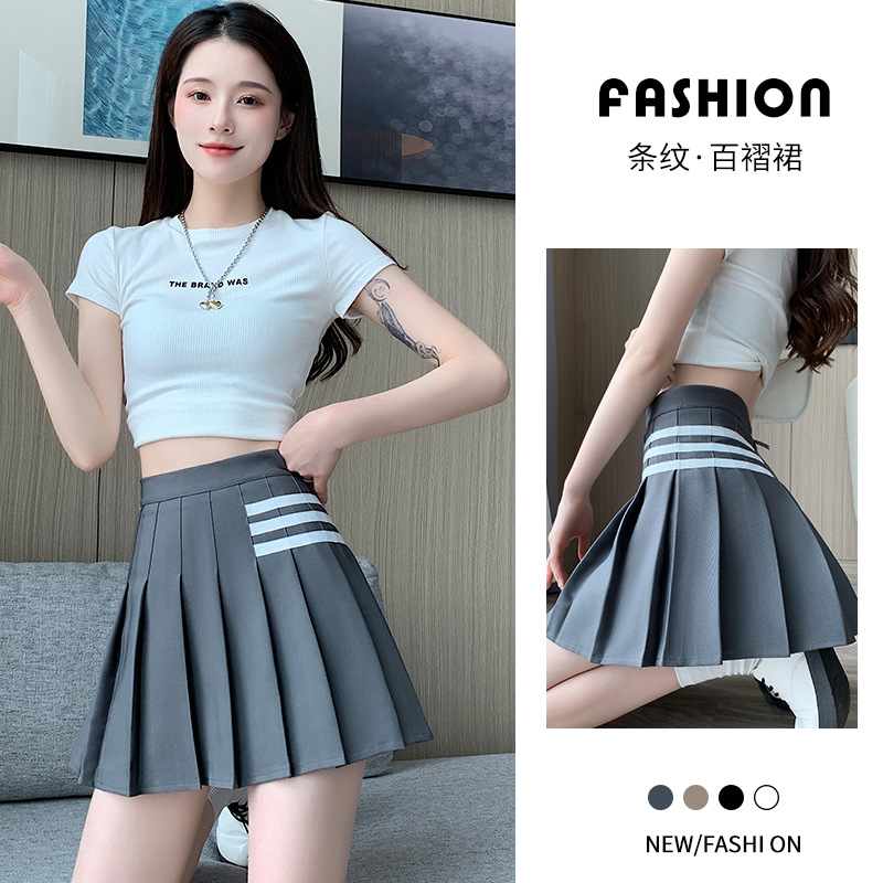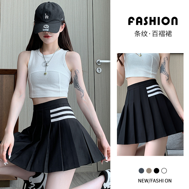 黑色百褶裙夏季女a字高腰新款百褶半身裙条纹小个子学院风jk短裙