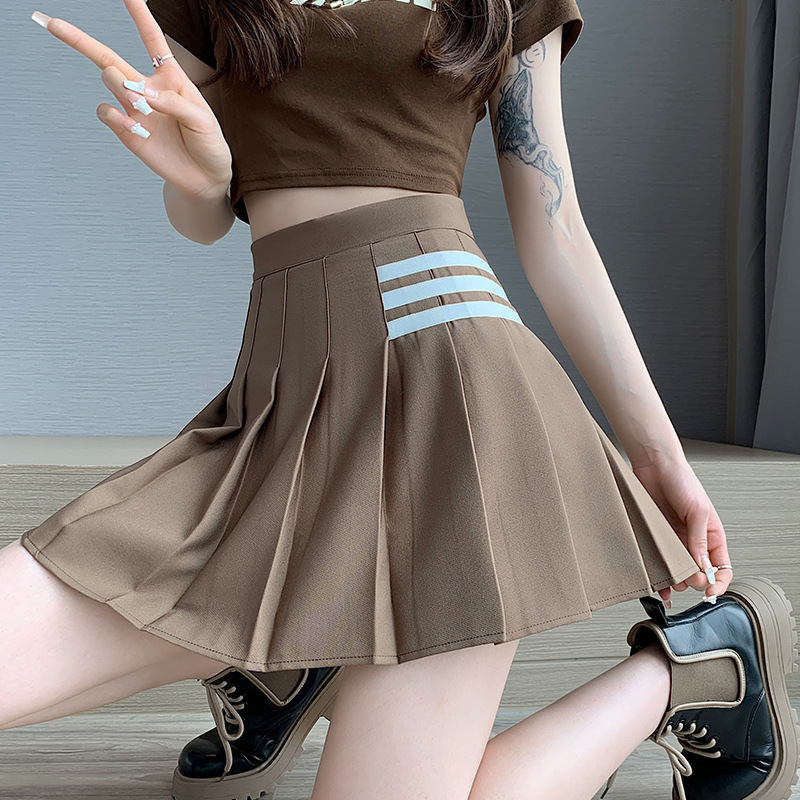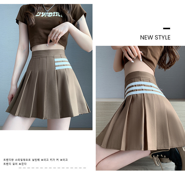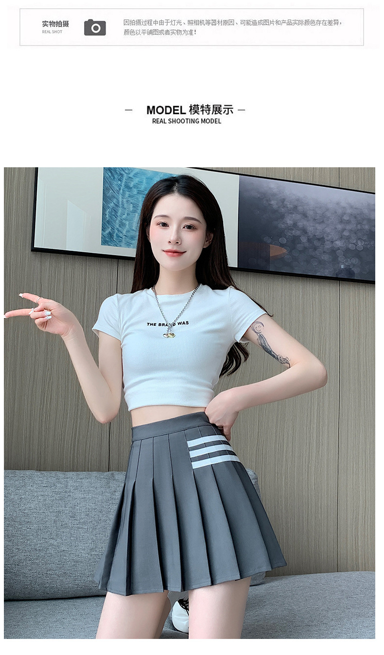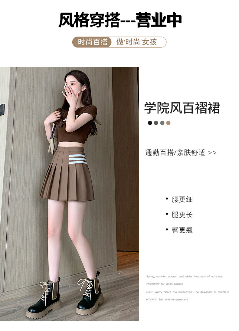 黑色百褶裙夏季女a字高腰新款百褶半身裙条纹小个子学院风jk短裙
