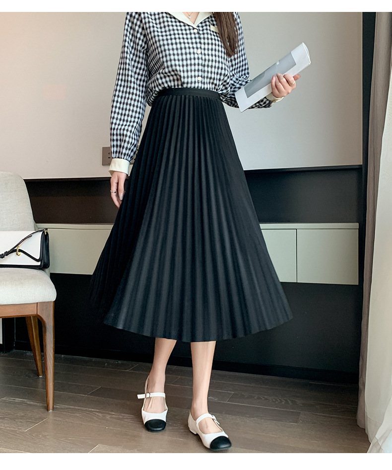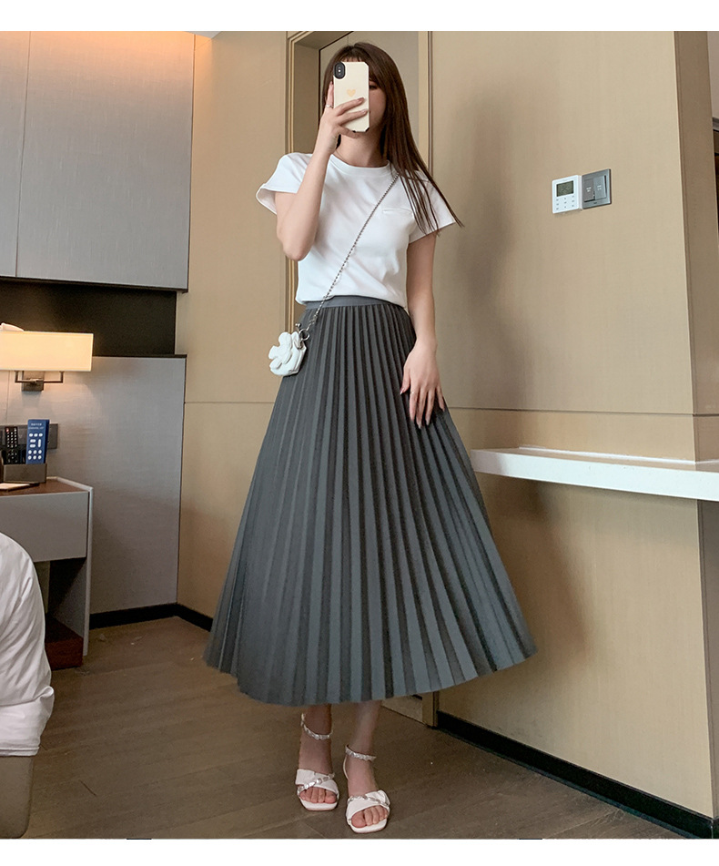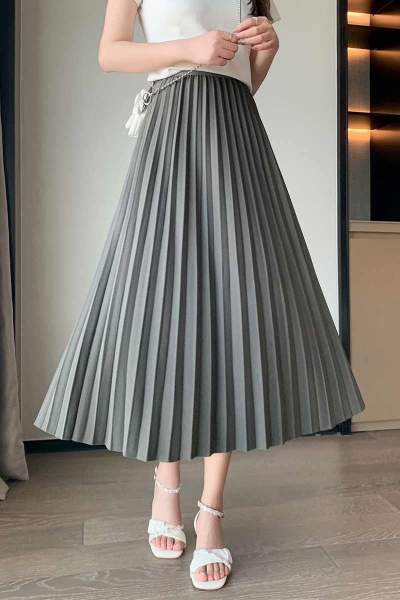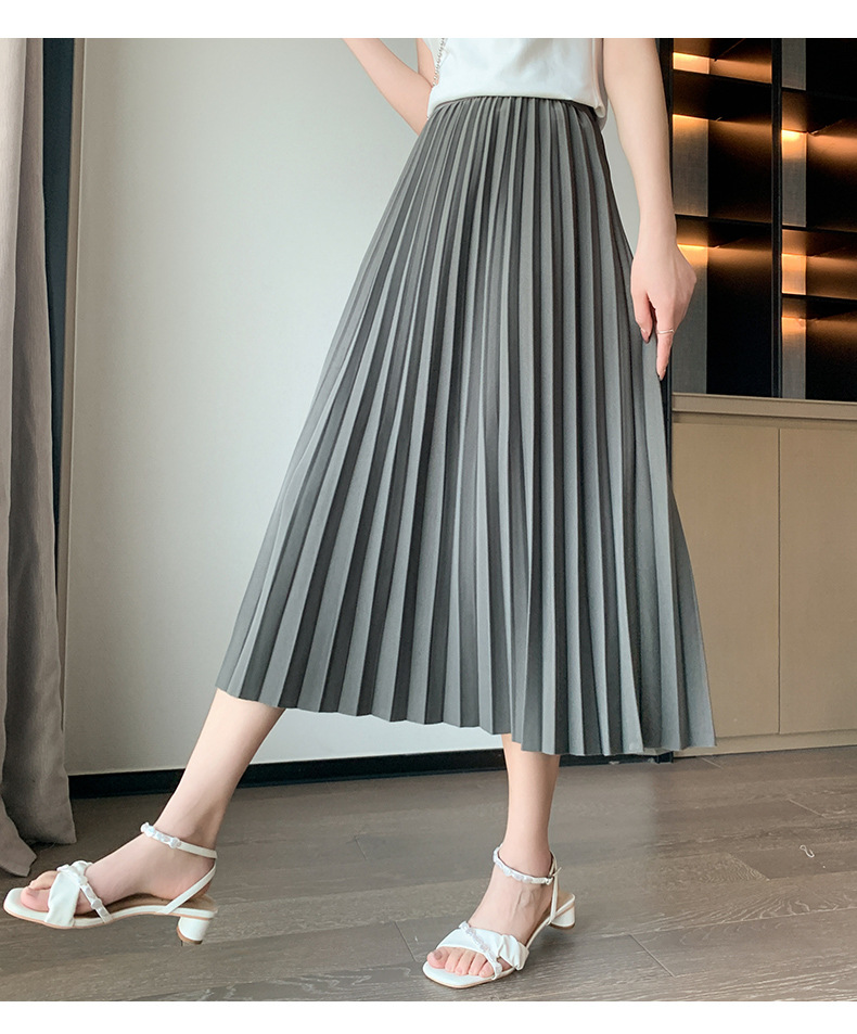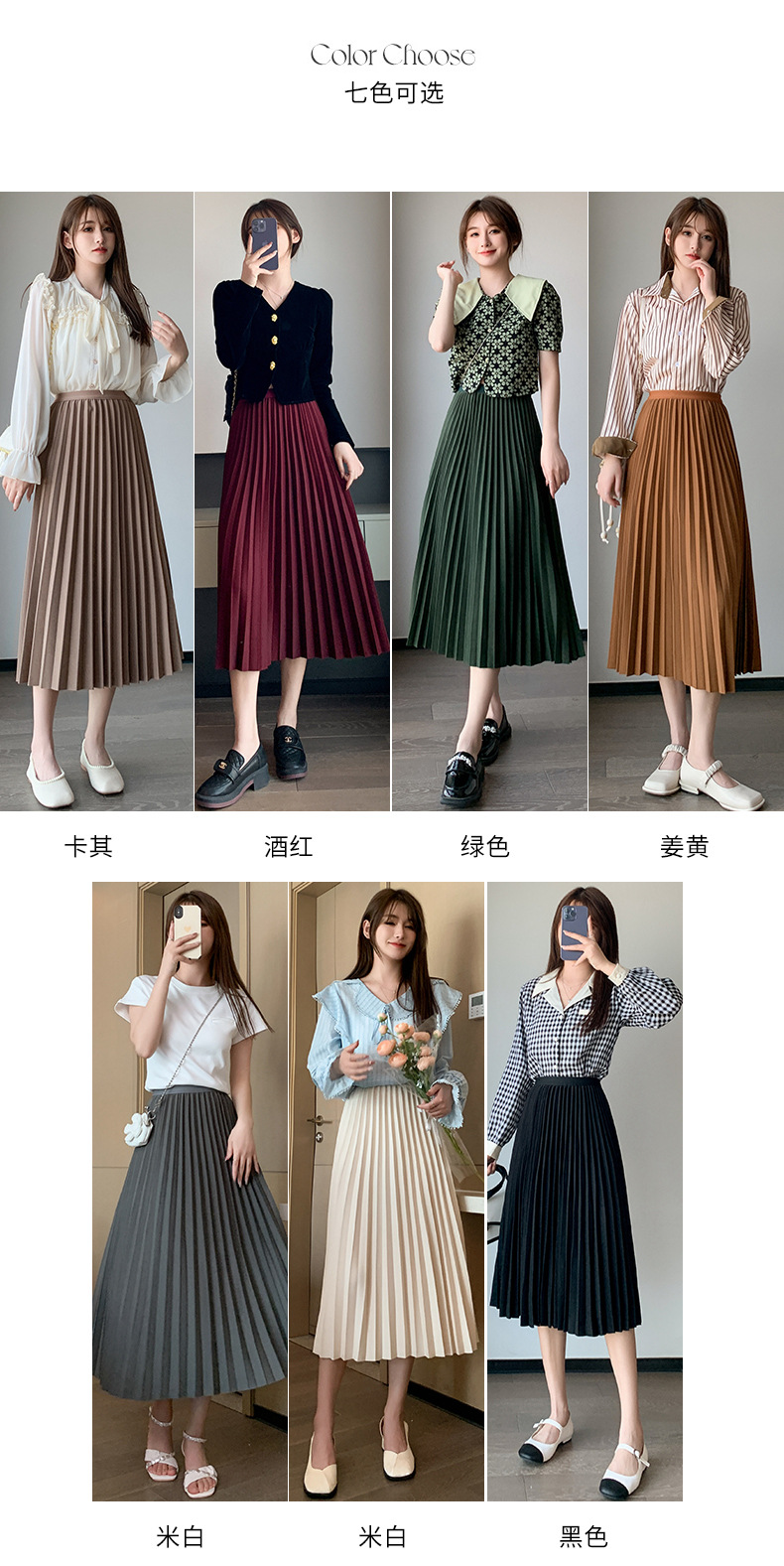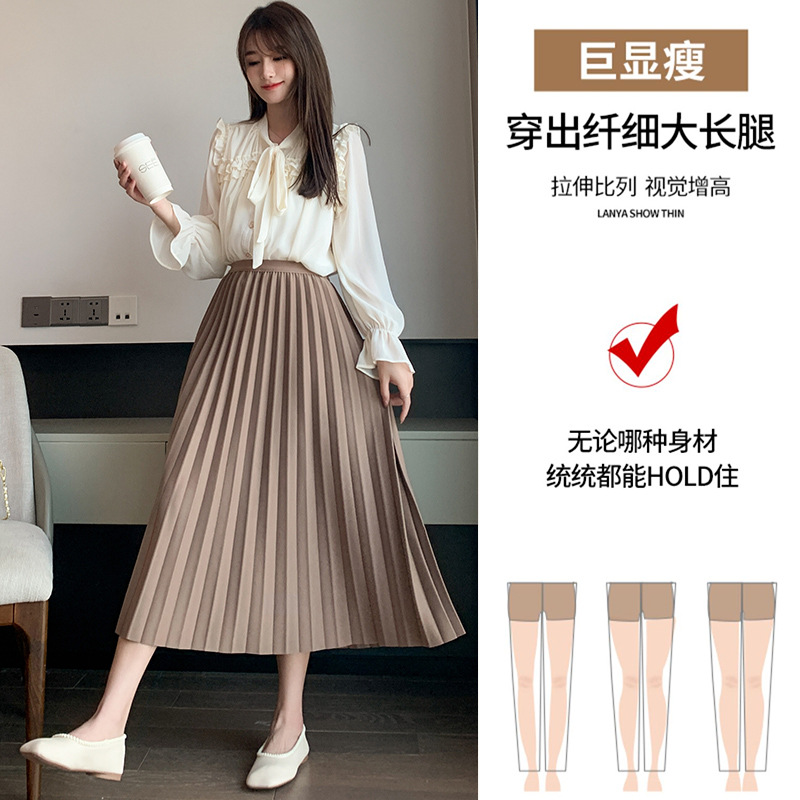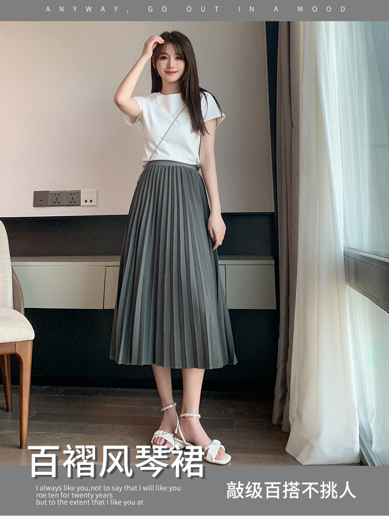 百褶大摆a字伞裙长裙春夏松紧高腰高温压褶复古显瘦中长款半身裙