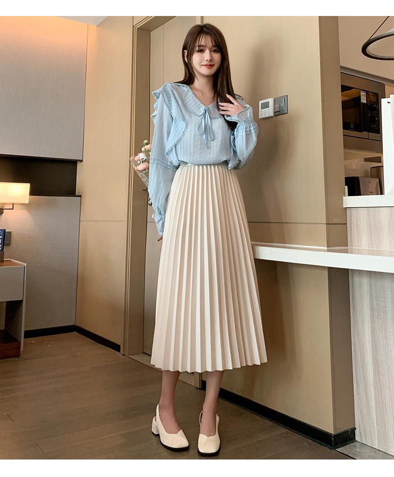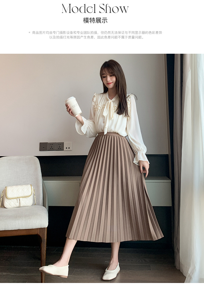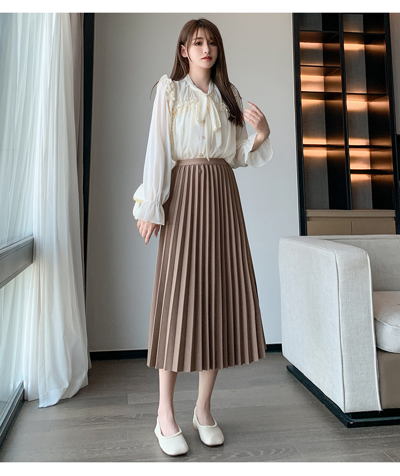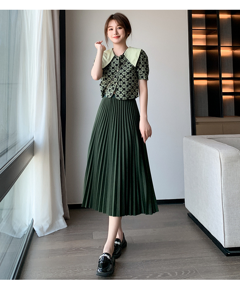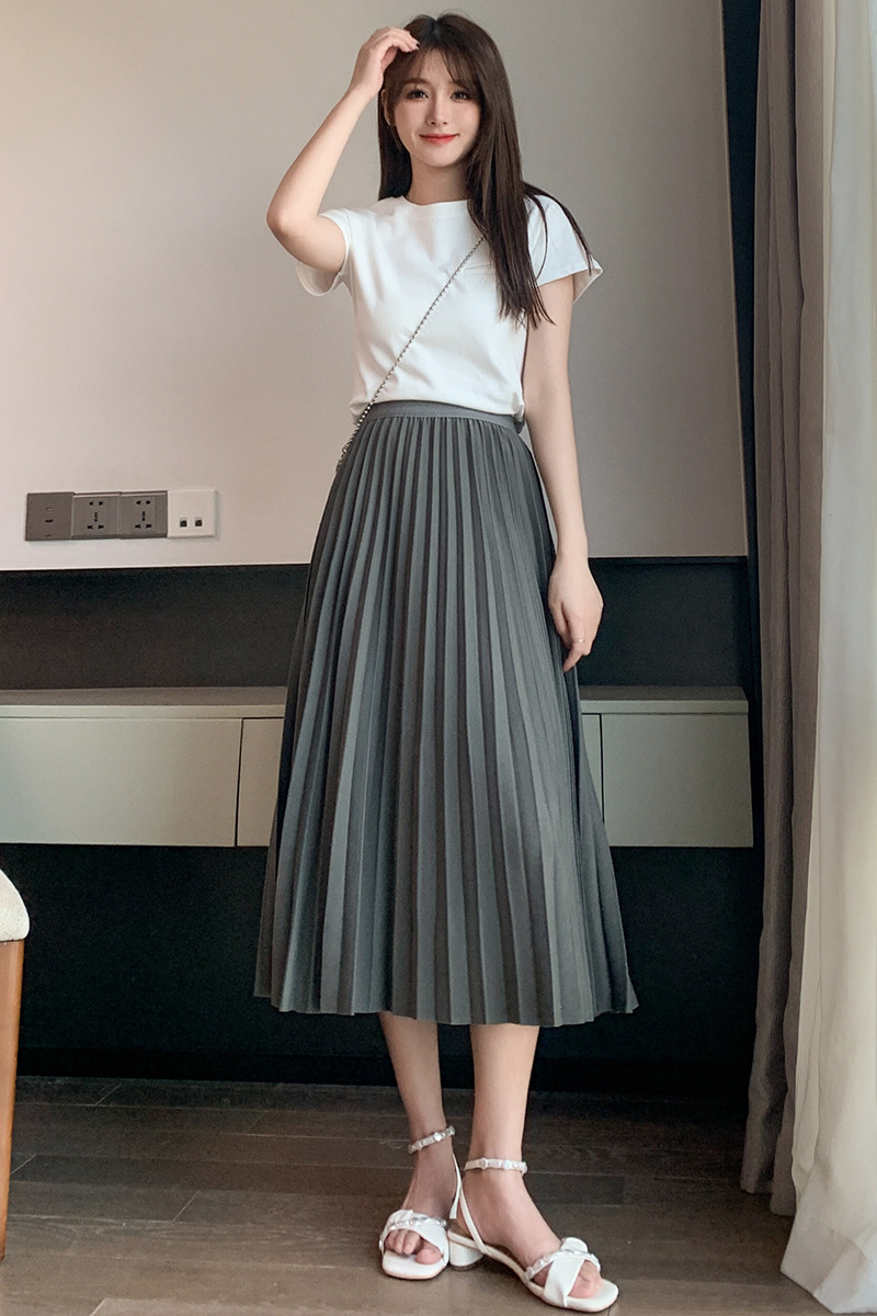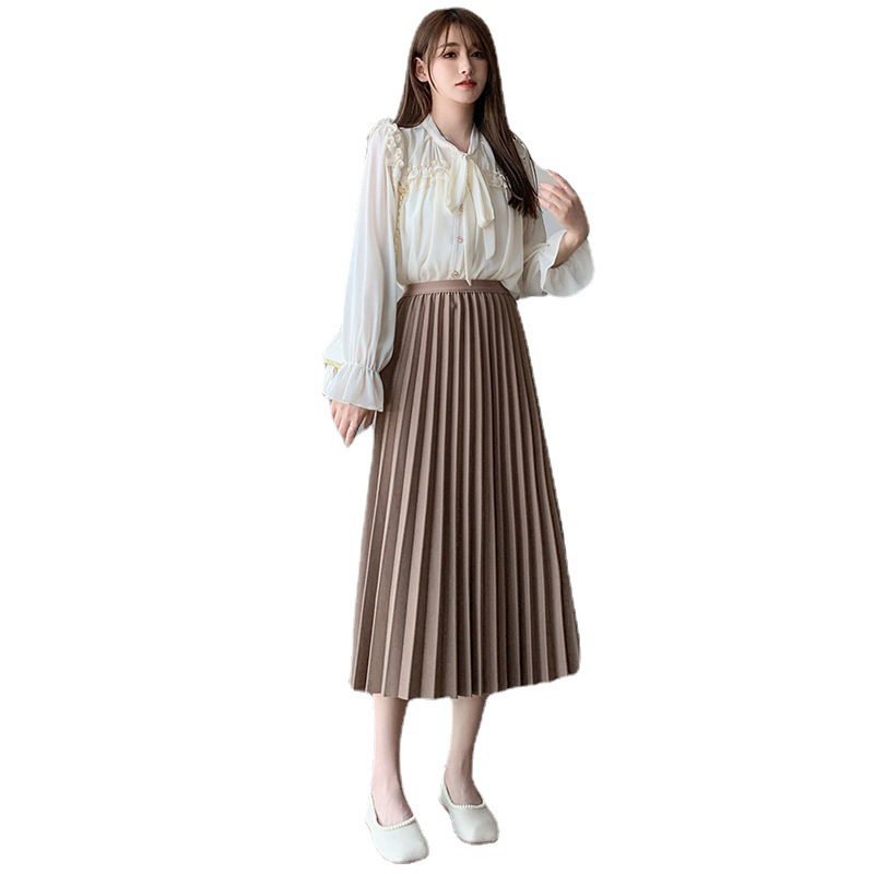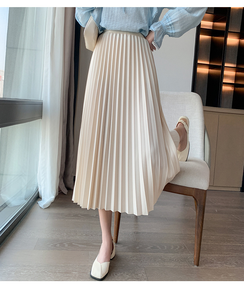 百褶大摆a字伞裙长裙春夏松紧高腰高温压褶复古显瘦中长款半身裙