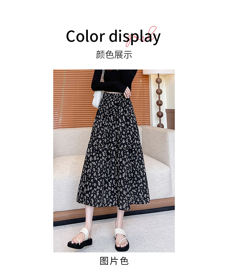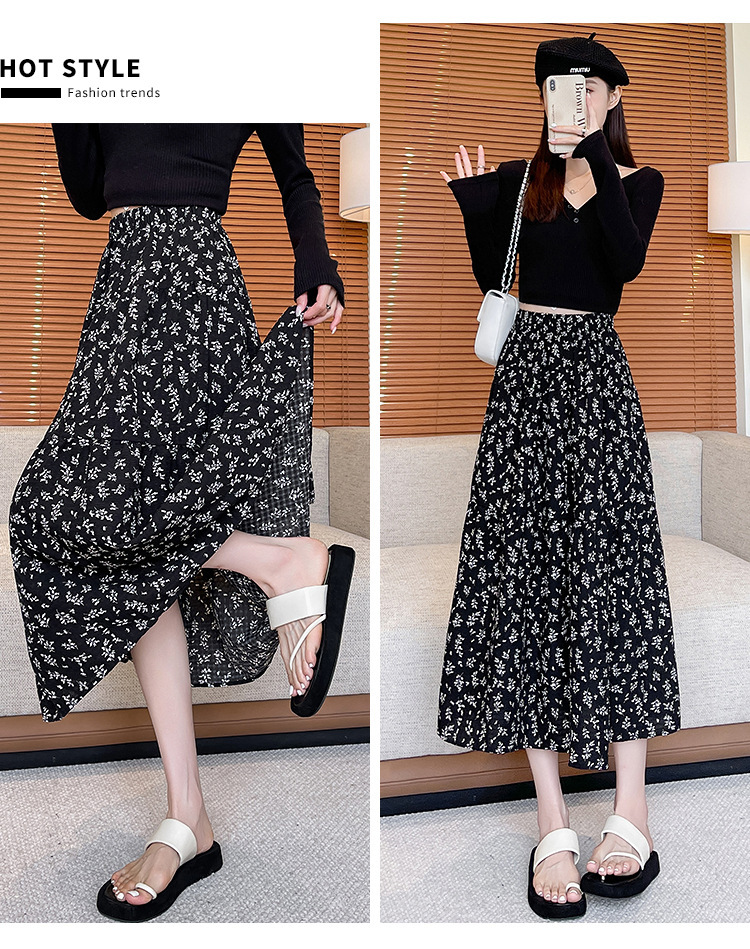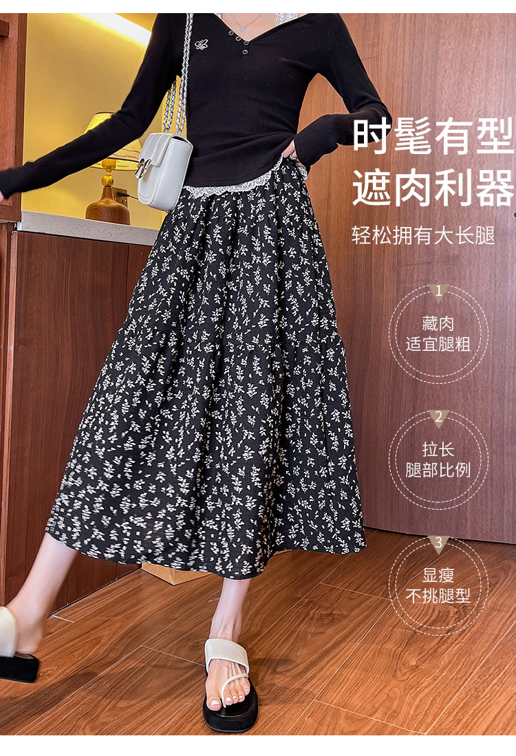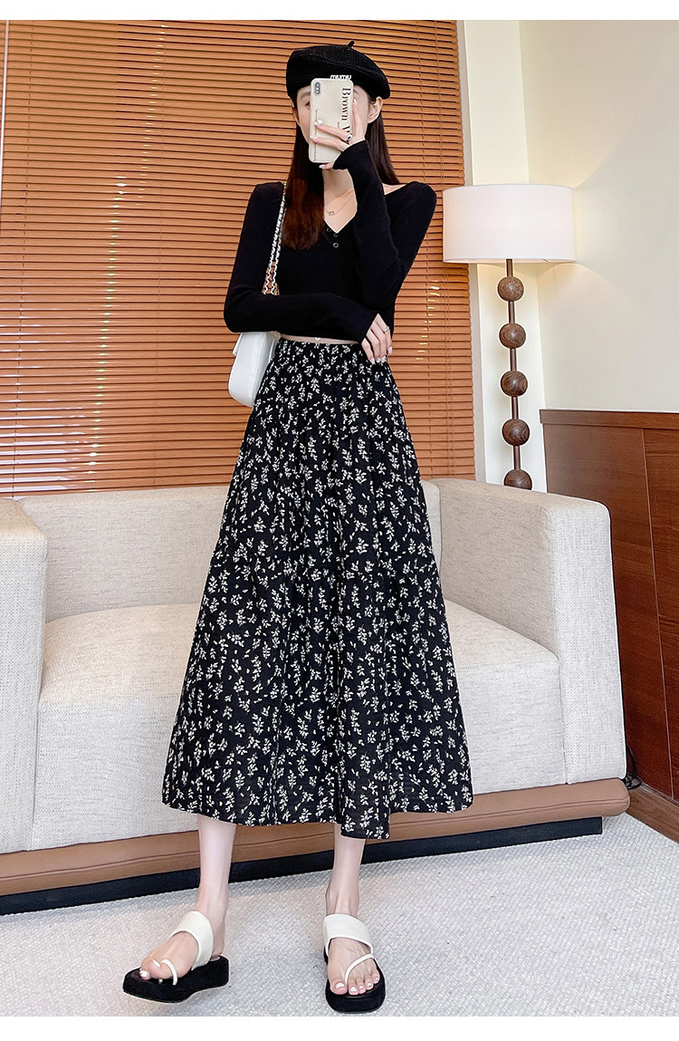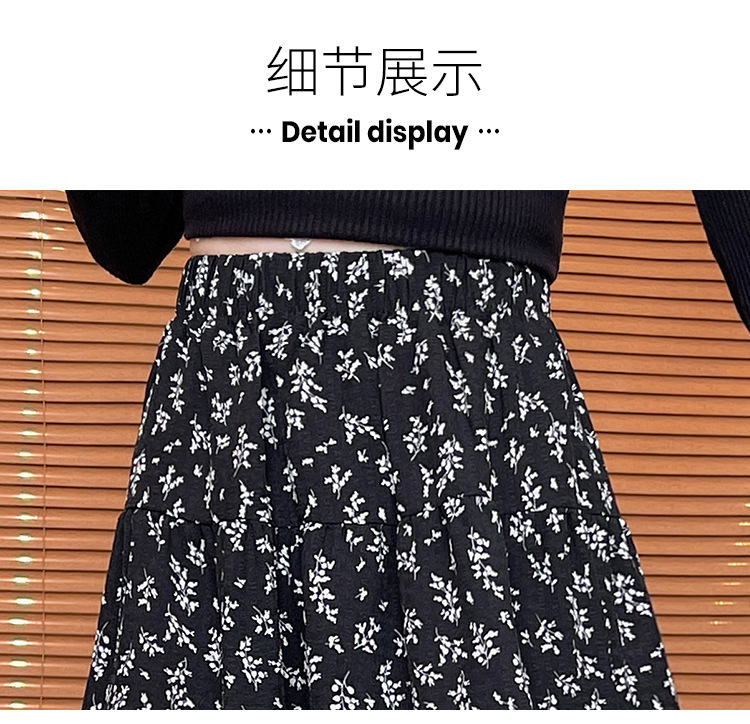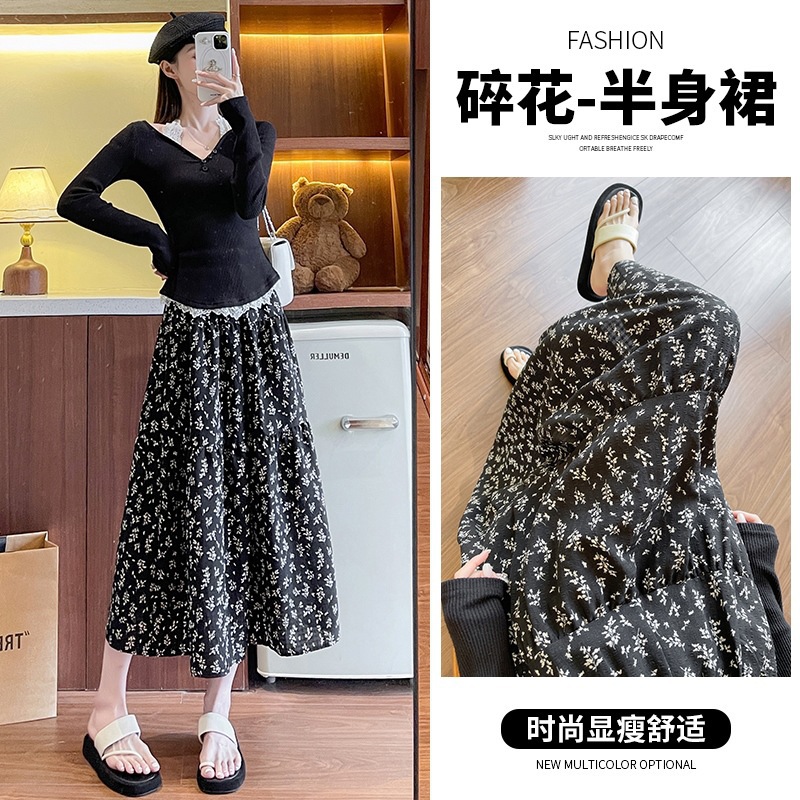 半身裙女春夏新款法式黑色碎花松紧腰显瘦遮胯秋冬高腰 a字中长裙