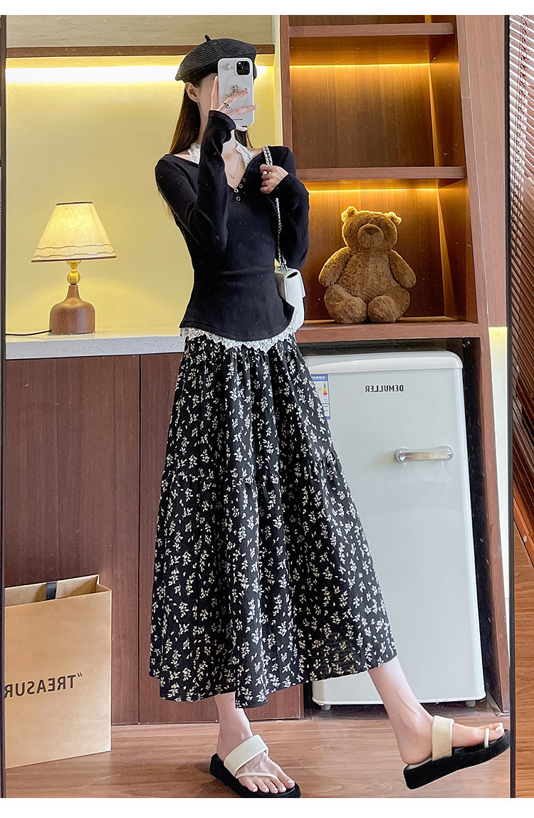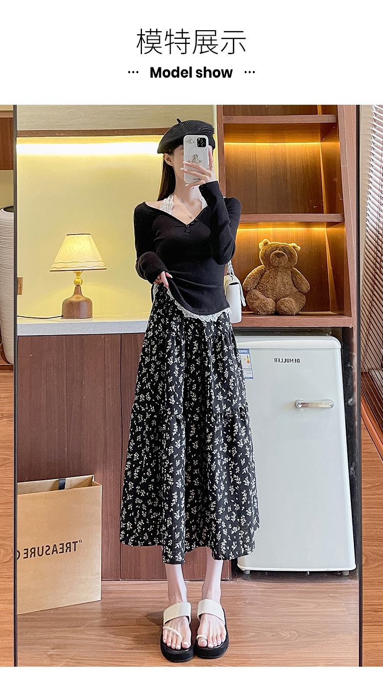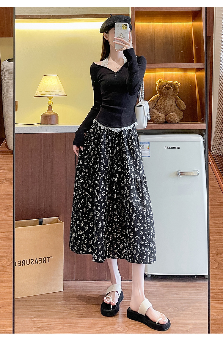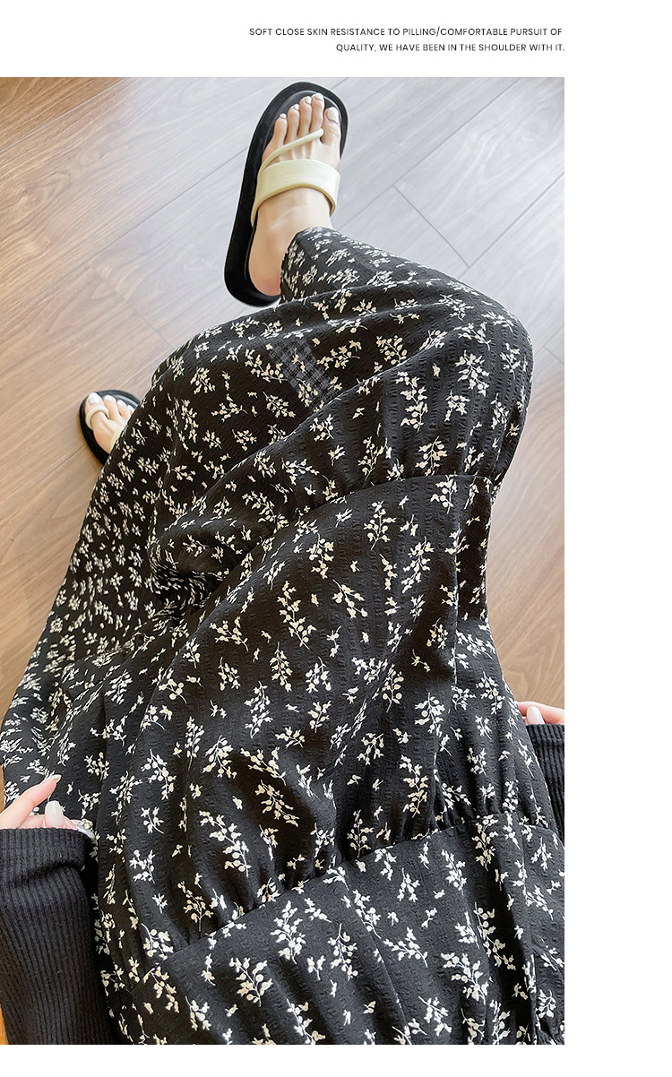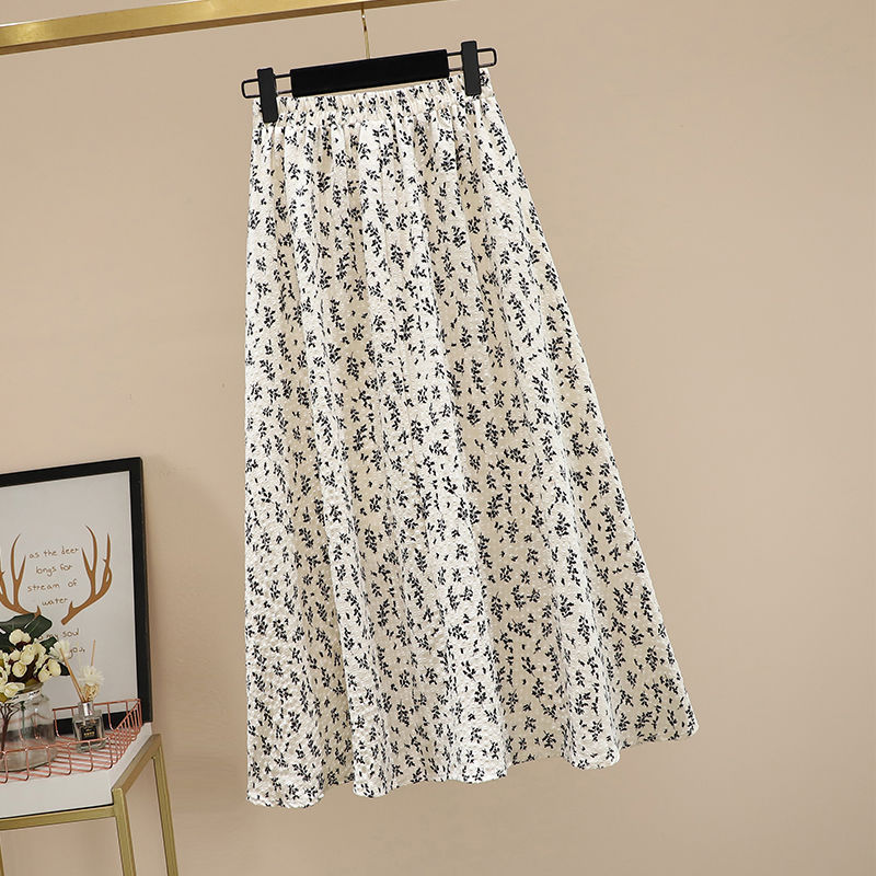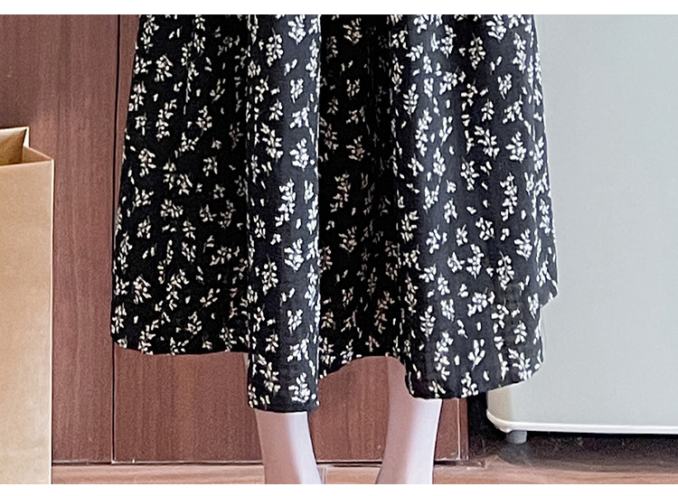 半身裙女春夏新款法式黑色碎花松紧腰显瘦遮胯秋冬高腰 a字中长裙
