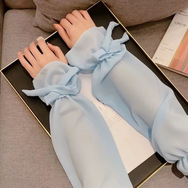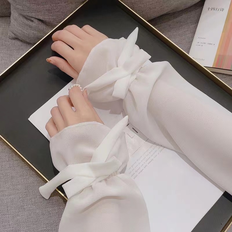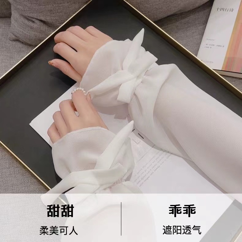 夏季防晒透气冰袖蝴蝶结冰丝袖套学生可爱甜美骑车遮阳防风手臂袖