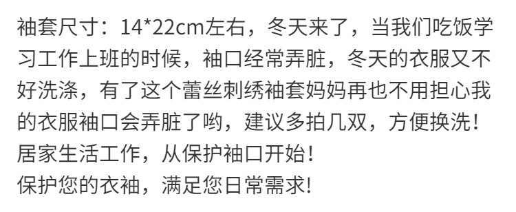 | short five flower oversleeve(短款五朵花袖套) | USD $0.0 | 199672 pair available |