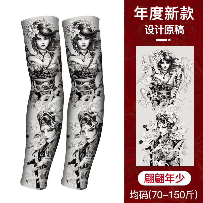 冰丝防晒袖套冰袖男士护臂防紫外线开车骑行手套手袖护袖纹身花臂