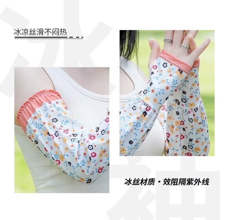 夏季防晒冰袖女透气紫外线套指轻薄宽松舒适出行冰丝袖套袖子护臂