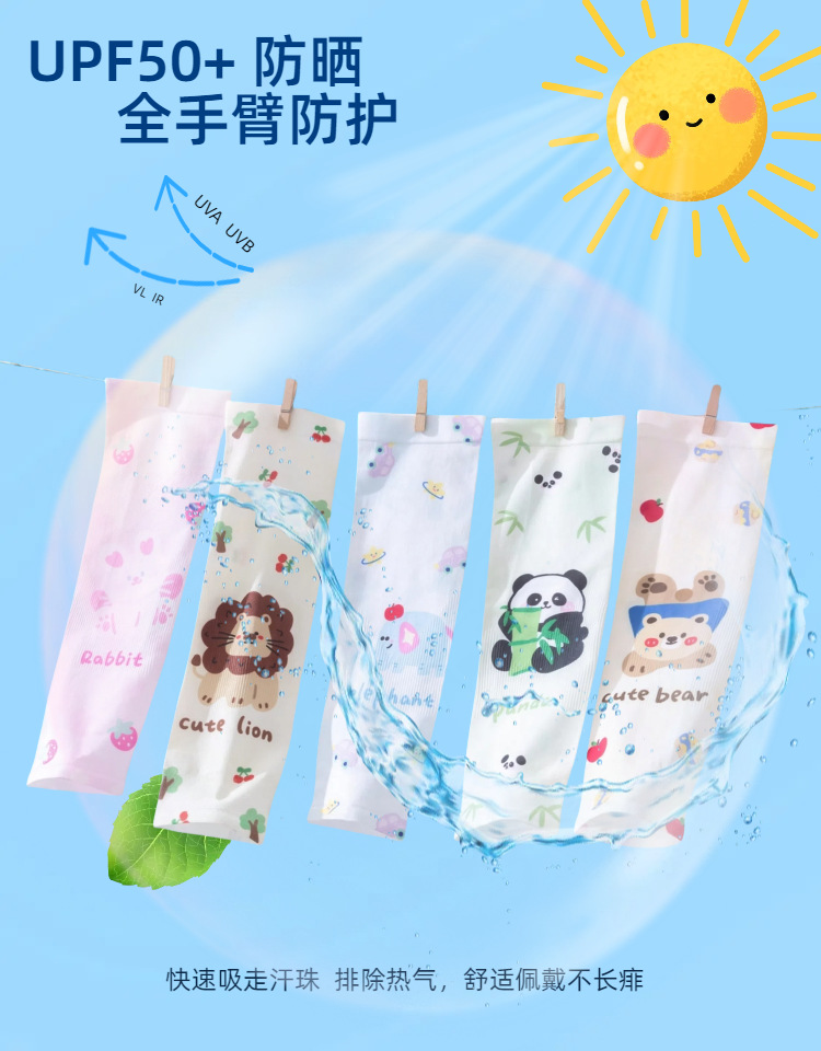 儿童冰袖防晒宝宝袖套女孩男童防紫外线凉感冰丝速干轻薄手臂套袖
