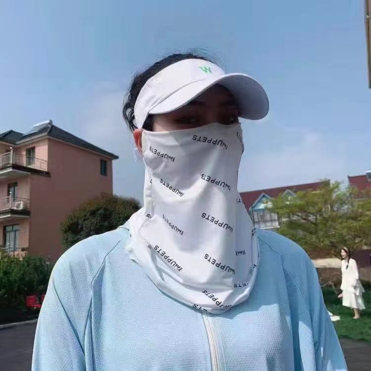 夏季防晒面罩防紫外线挂耳式冰丝面纱护颈围脖薄款全遮面骑行面罩