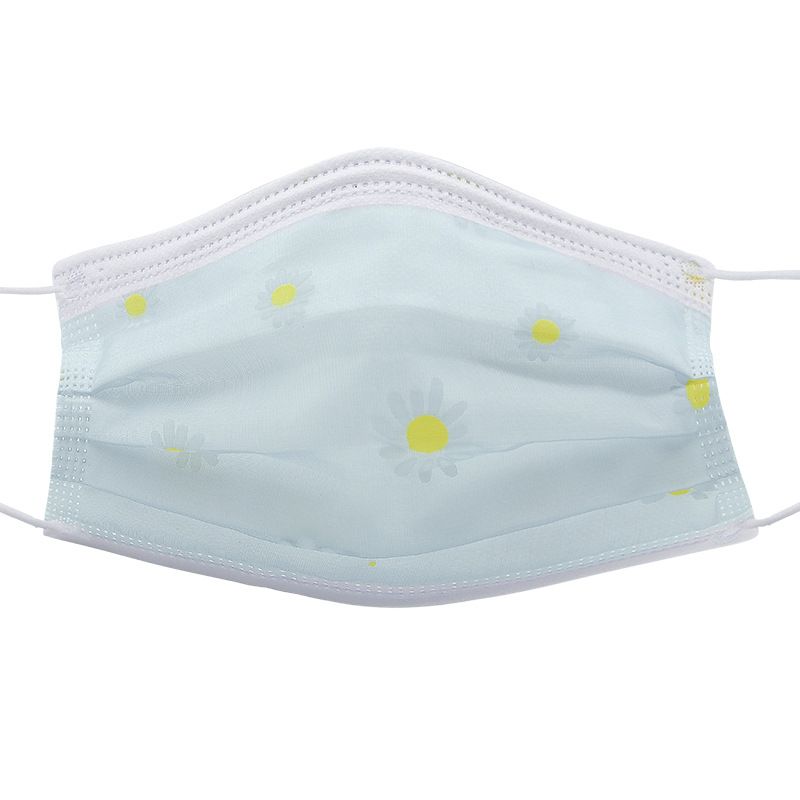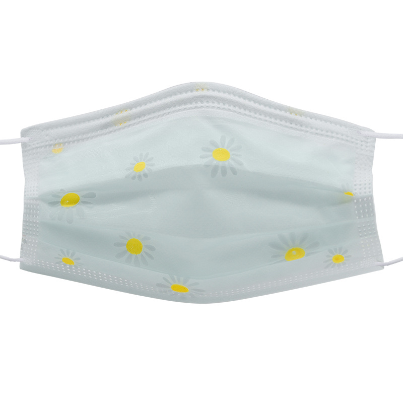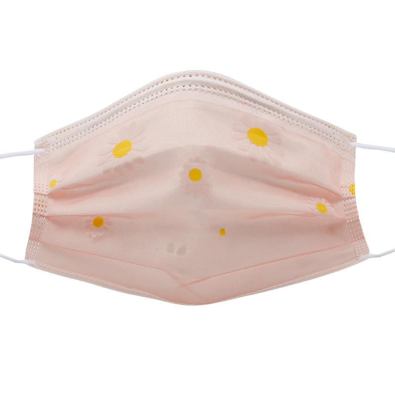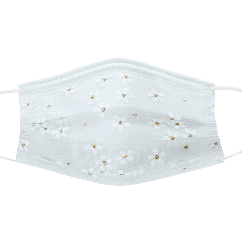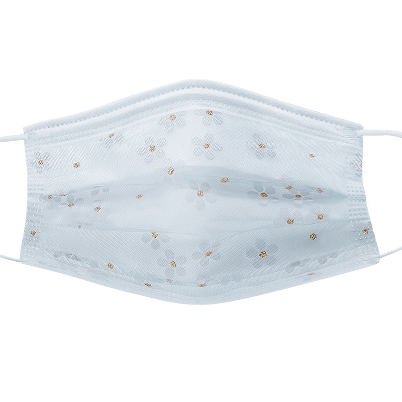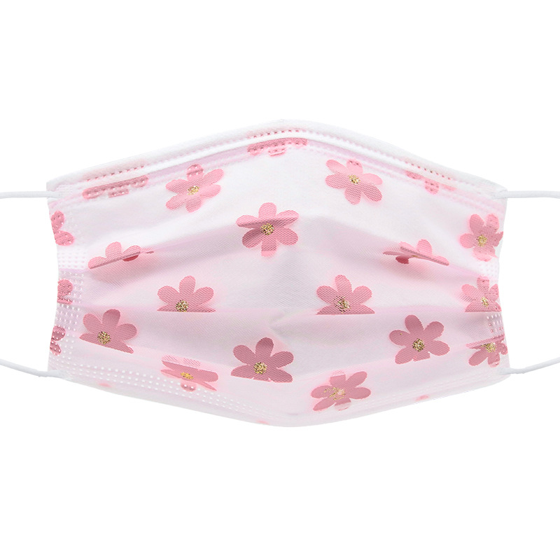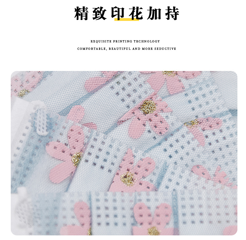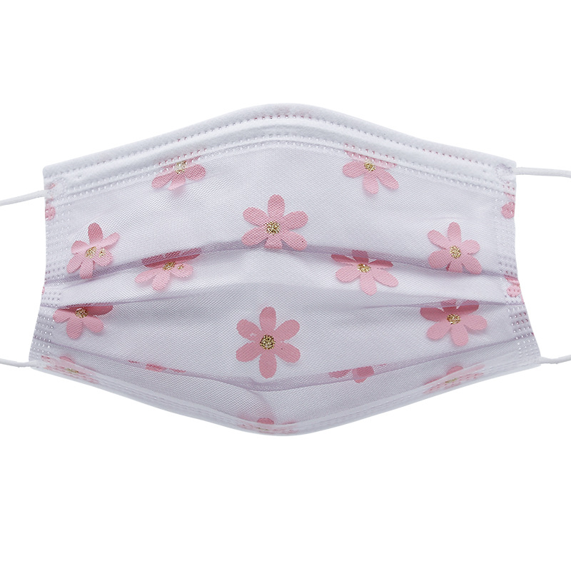 四层网纱印花一次性口罩 成人透气防尘防晒带熔喷无纺布时尚面罩