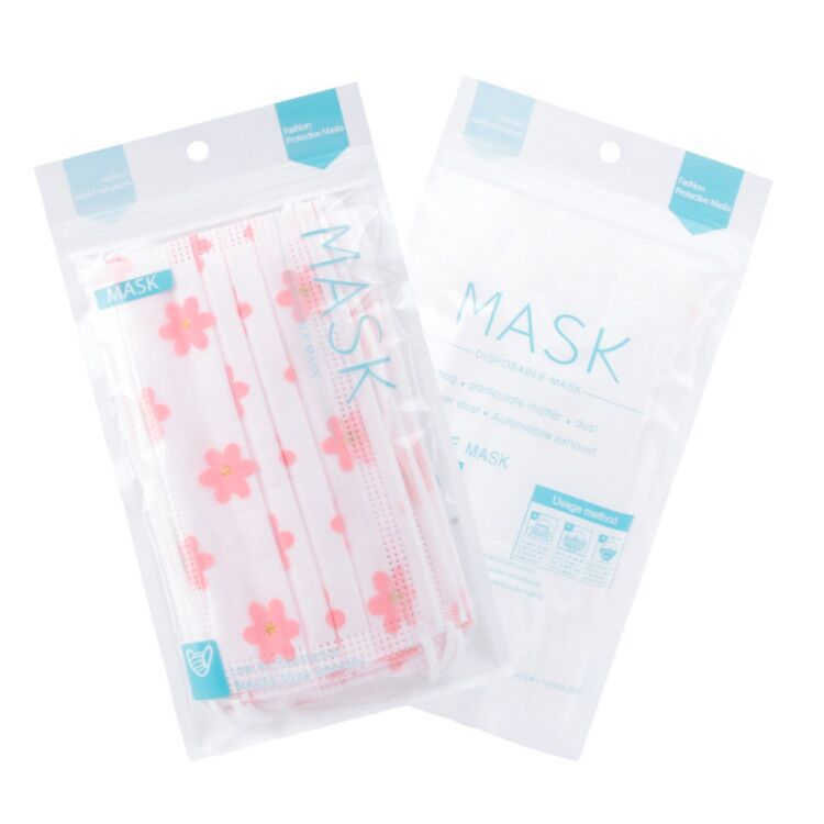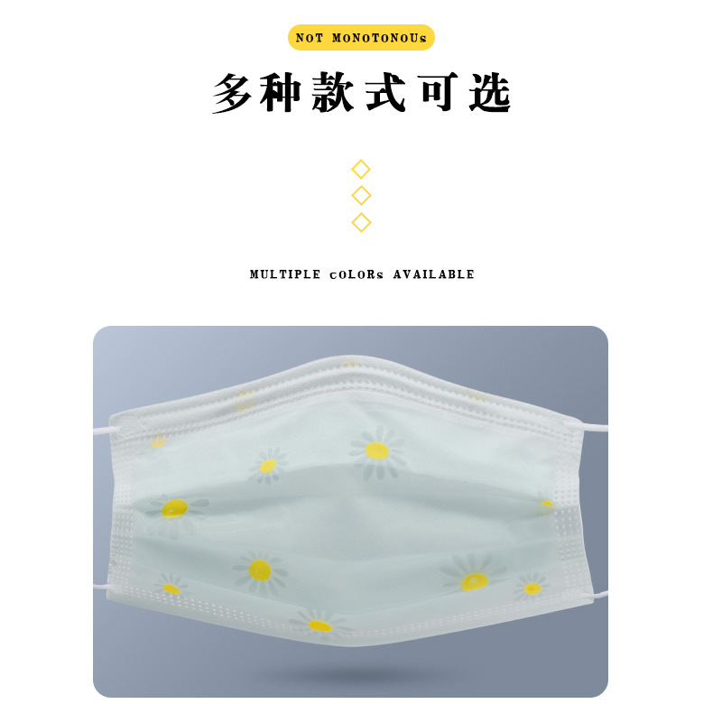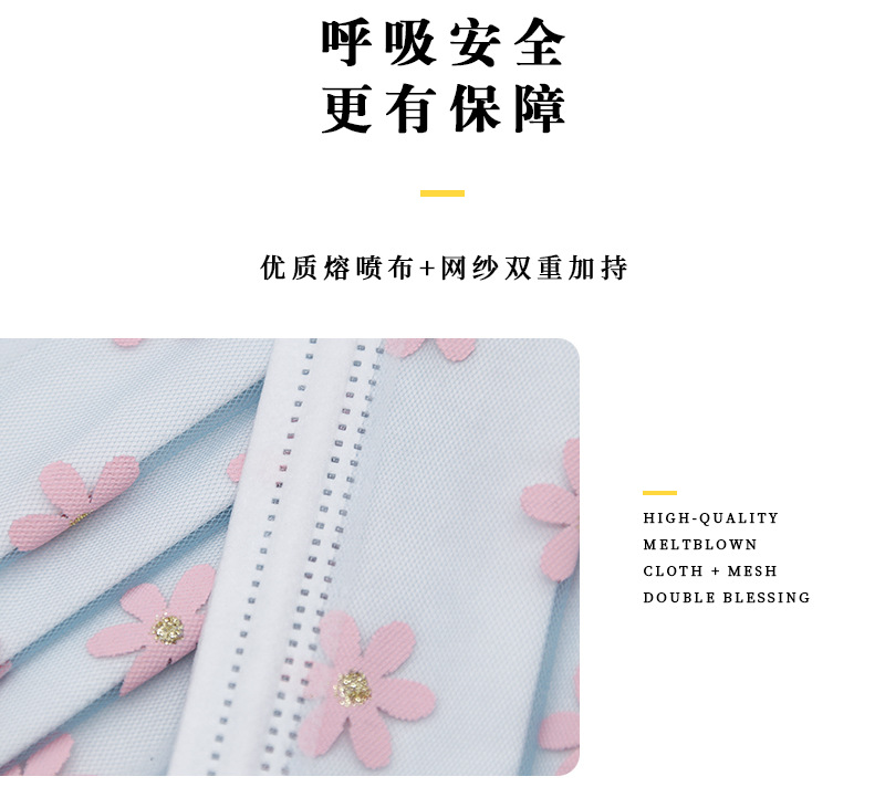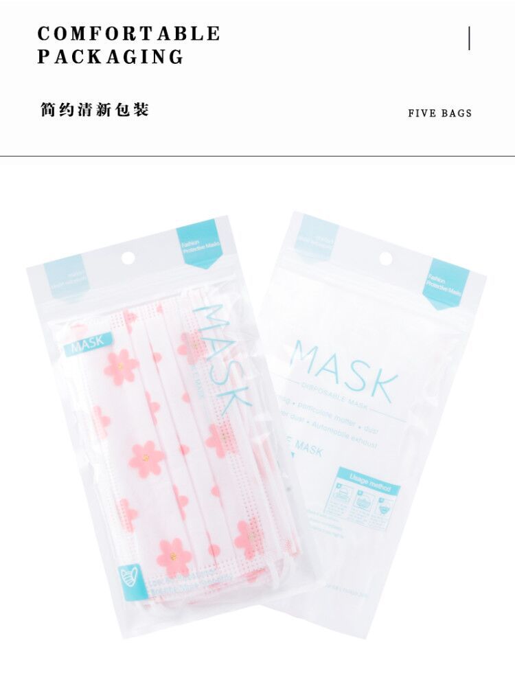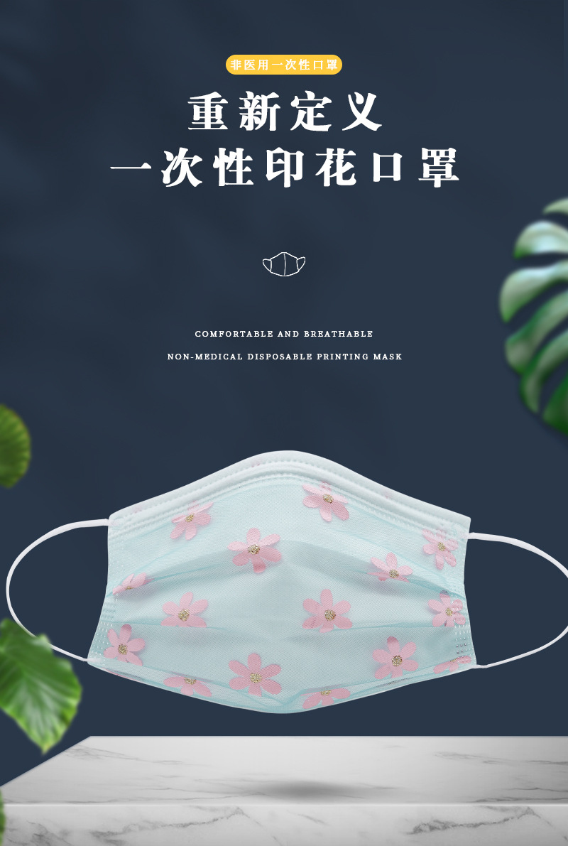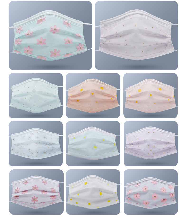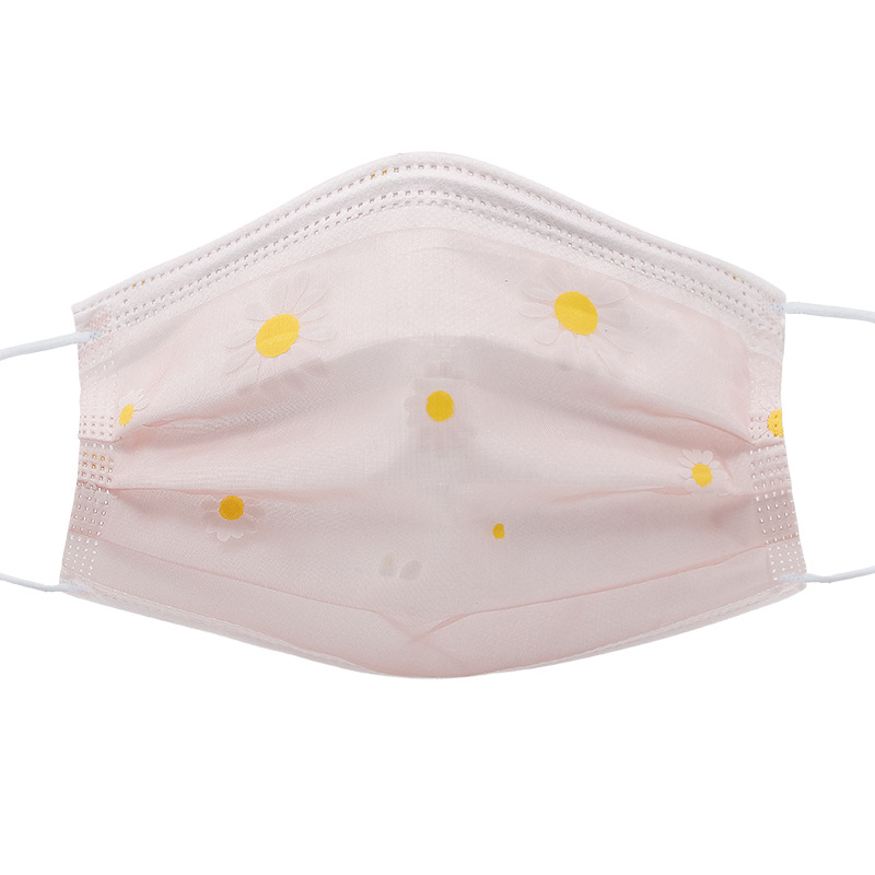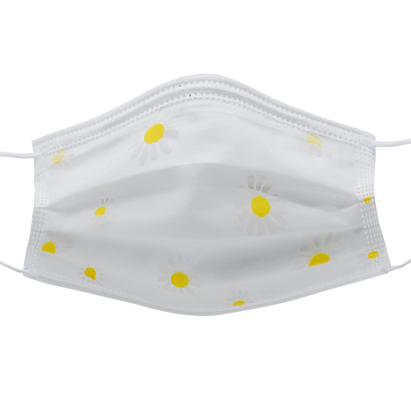 四层网纱印花一次性口罩 成人透气防尘防晒带熔喷无纺布时尚面罩