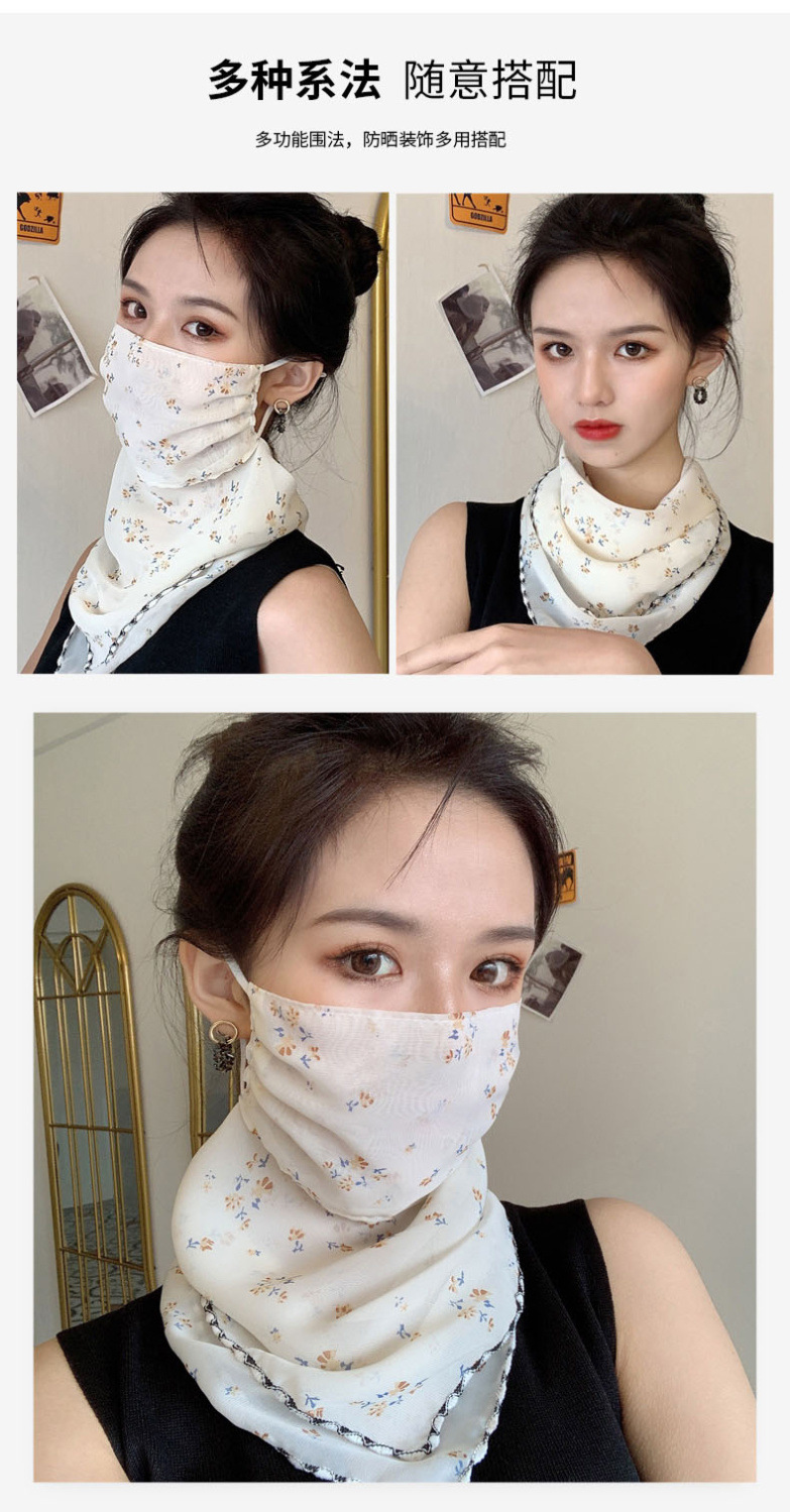 新款夏季户外防晒面罩女士骑行透气挂耳面纱绣花全脸口罩护颈围脖