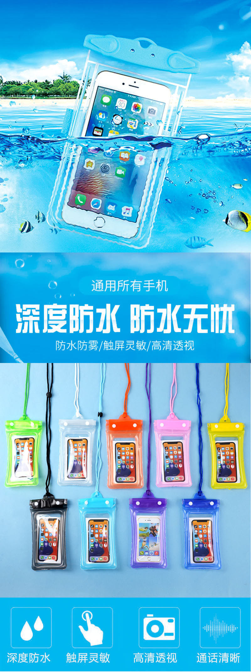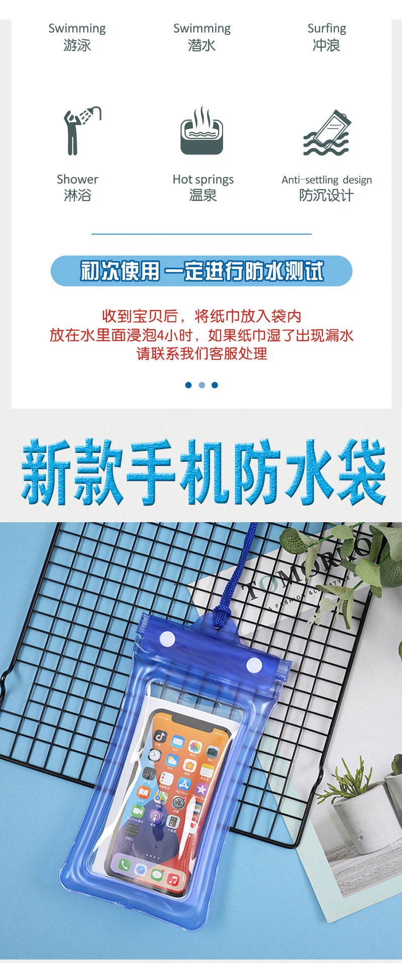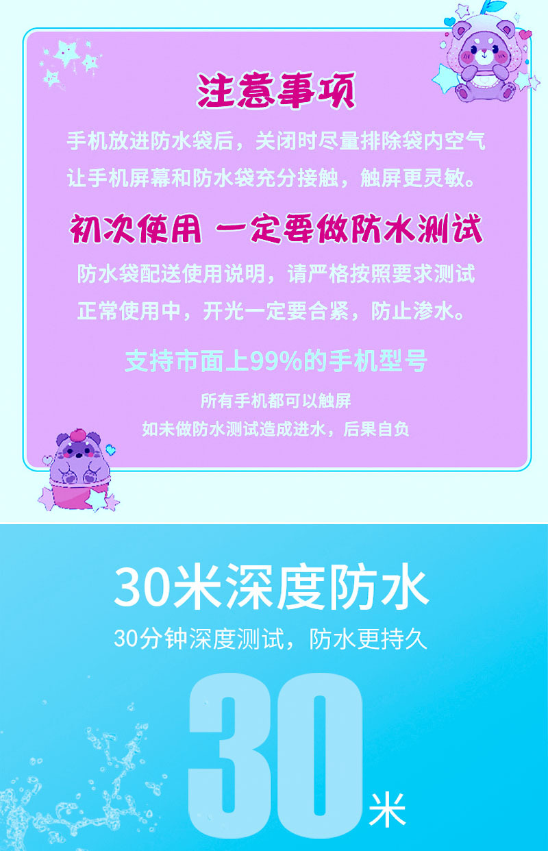 卡通三折气囊手机防水袋水上乐园防水手机袋漂浮游泳可触屏手机套