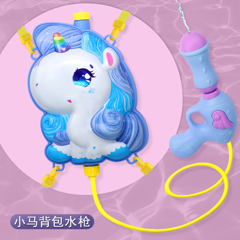 儿童水枪背包抽拉式奥特独角兽戏水喷水枪男女孩玩具地摊批发代