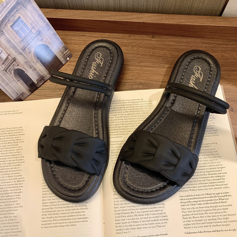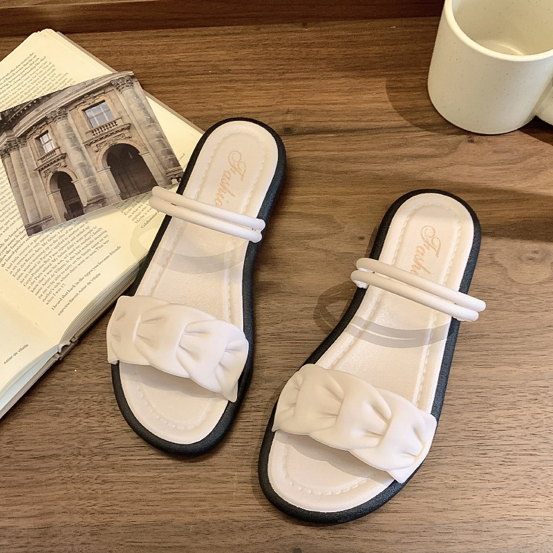蝴蝶结拖鞋女夏外穿网红新款时尚家居平底防滑仙女风一字凉拖软底