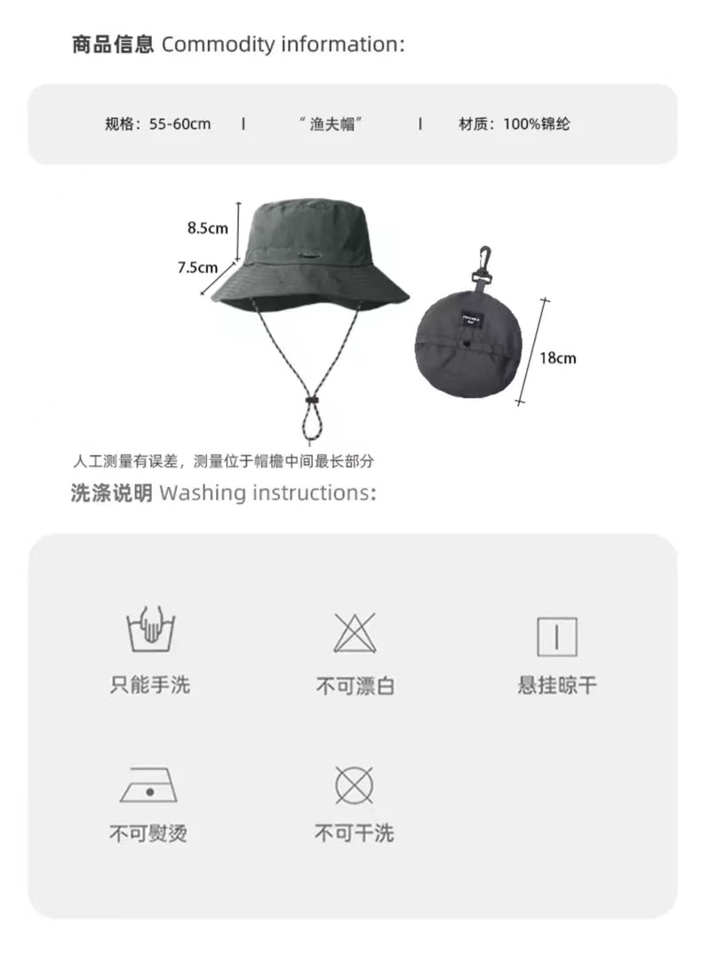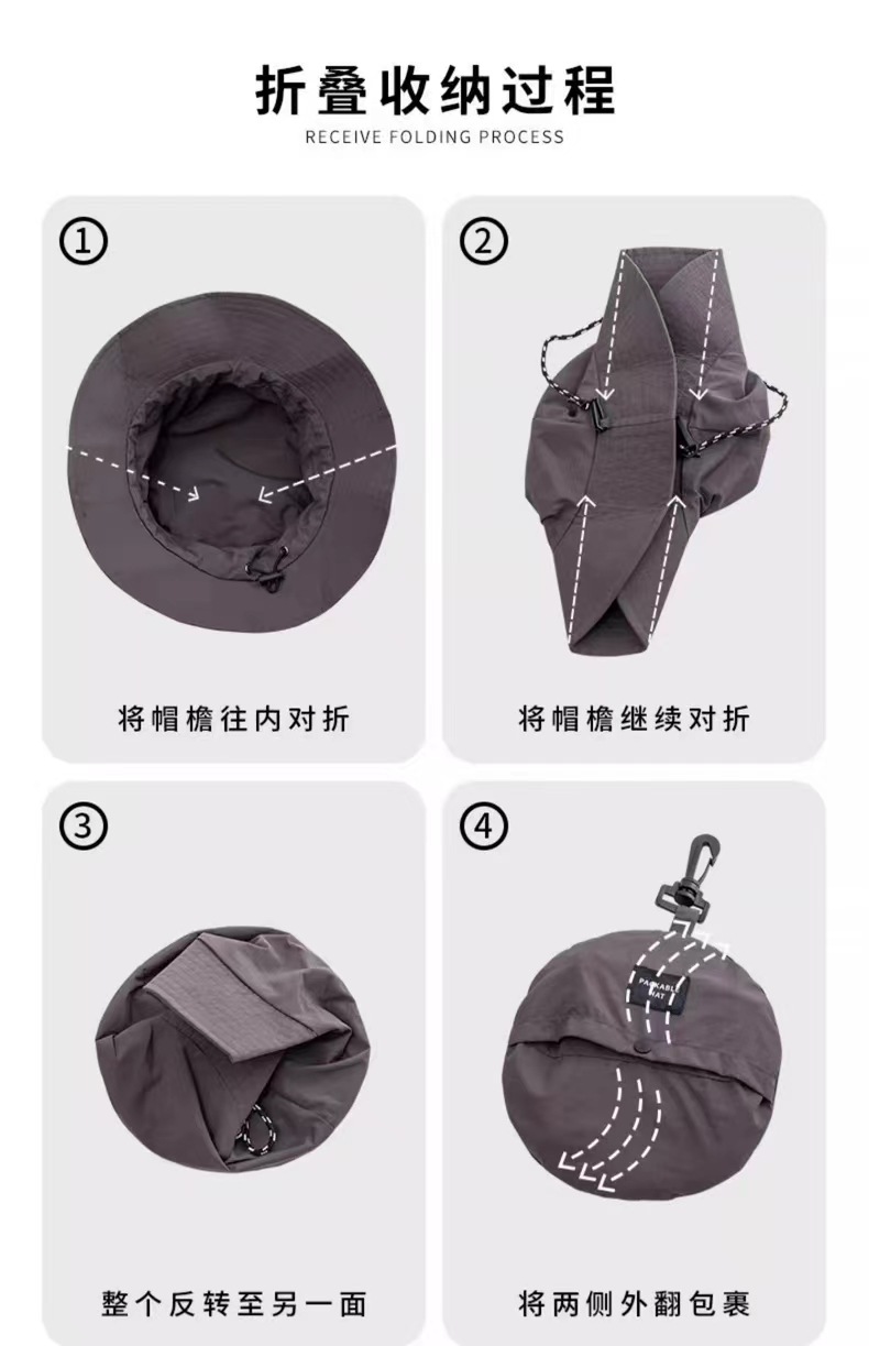 可收纳包包盆帽夏季速干防水渔夫帽薄款户外登山帽男士遮阳帽子女